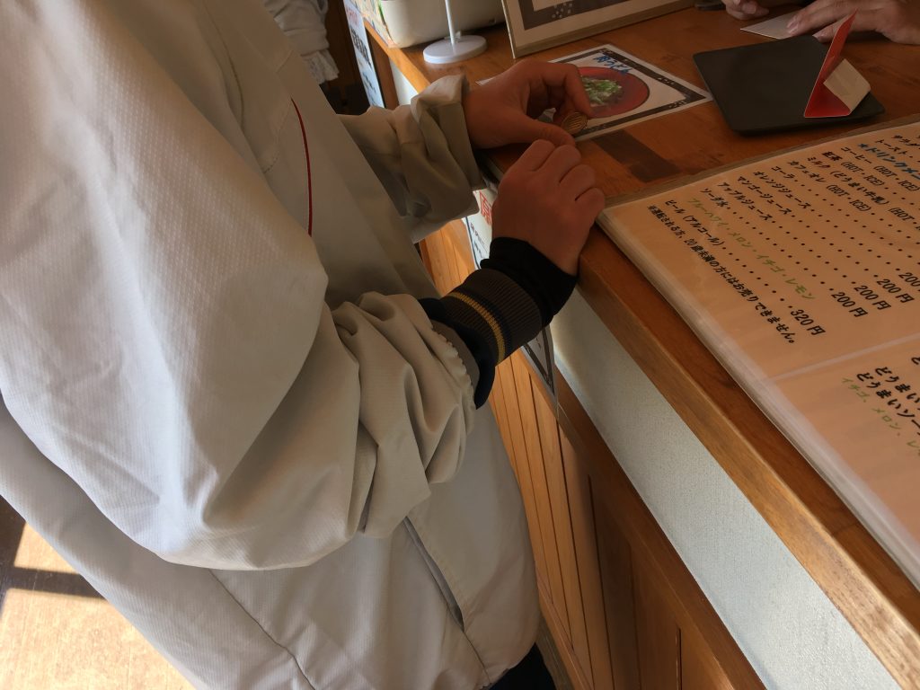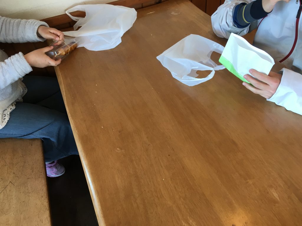 その後は、おやつを買いに行きました。200円以内で買えるものを探し、Yくんはコロッケ、Mちゃんはお団子を選びました。