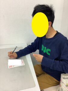 課題の中でなぞりの練習をしている子には、住所のなぞり書きに挑戦してもらいました。持ち慣れないボールペンを手に、頑張って丁寧になぞってくれました。日ごろの成果がばっちり出ています!