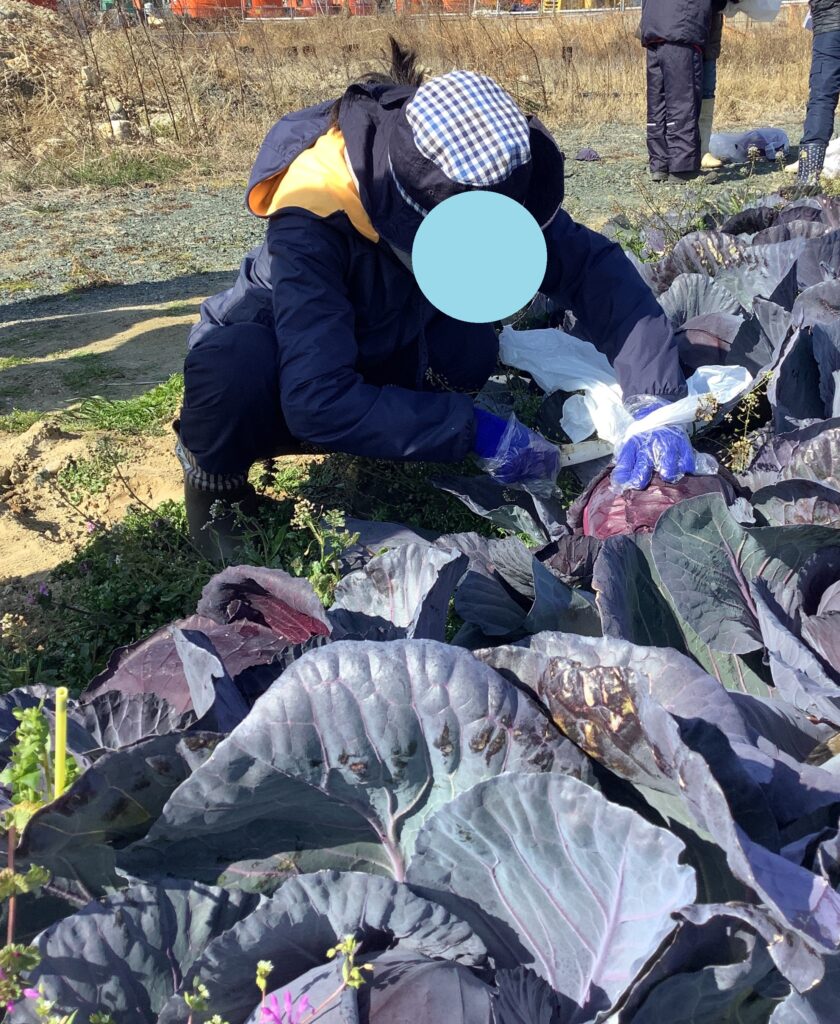 土曜日の活動でキャベツの収穫体験に行きました。大きなキャベツ、紫キャベツの収穫を行いました!