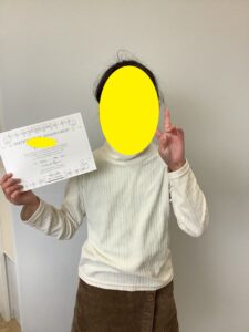 英語の進級テスト合格の賞状は文面がすべて英語で書かれており、受け取った皆さん「おぉ~っ!」と驚き嬉しそうな笑顔が見えました🥰