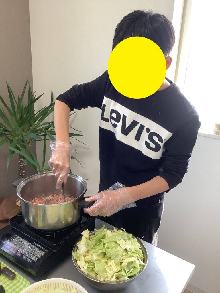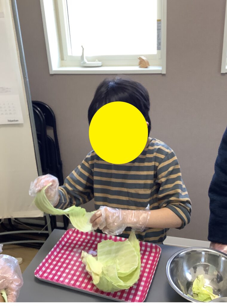 前回のブログで紹介させていただいた、キャベツ収穫体験に続き、春休みの後半はキャベツを使った料理体験を行ってもらいました。