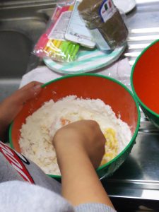 Kちゃんが提案してくれたカップケーキ作りがスタートです。