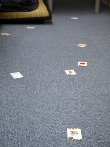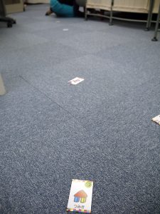 カードを並べようとしたら「僕がやる!」とカードを持って、立ち上がる。