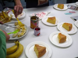 予定では丸いスポンジを「みんなでデコレーション!」でしたが、いつもアイデアを出してくれるKちゃんが