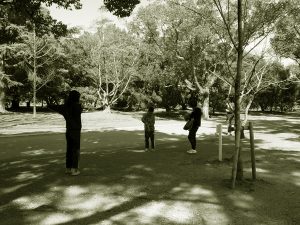公園ではまず縄跳び! Y君は今日も記録更新! Mちゃんは縄の長さが合わず飛びにくそうでしたが、上手に飛んでいました。