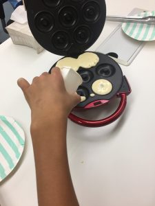 紙コップに液を入れたら、ドーナツ作り機に投入!!!