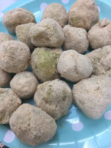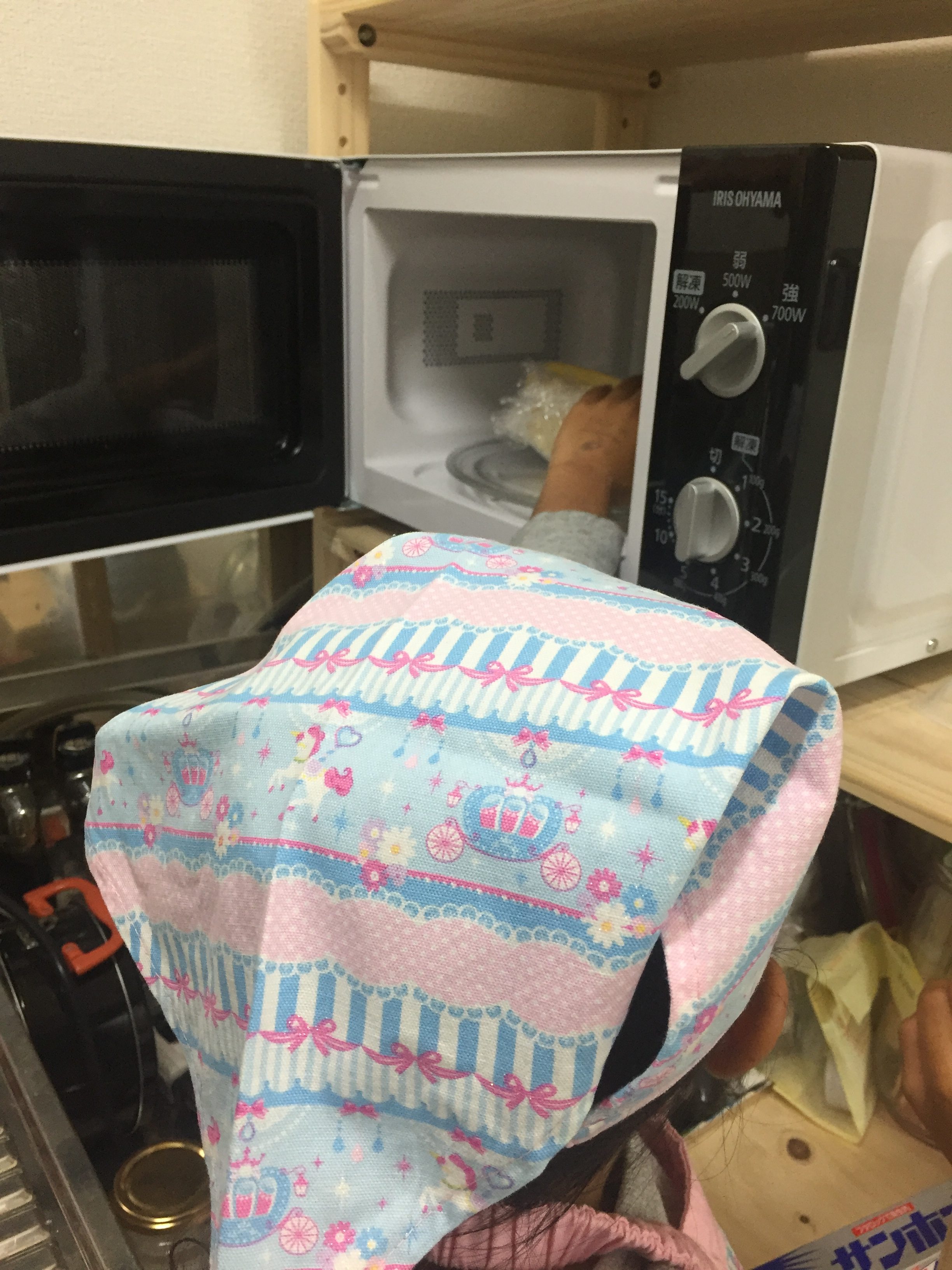 チンしている間に、ホットケーキミックスを混ぜ混ぜ。
