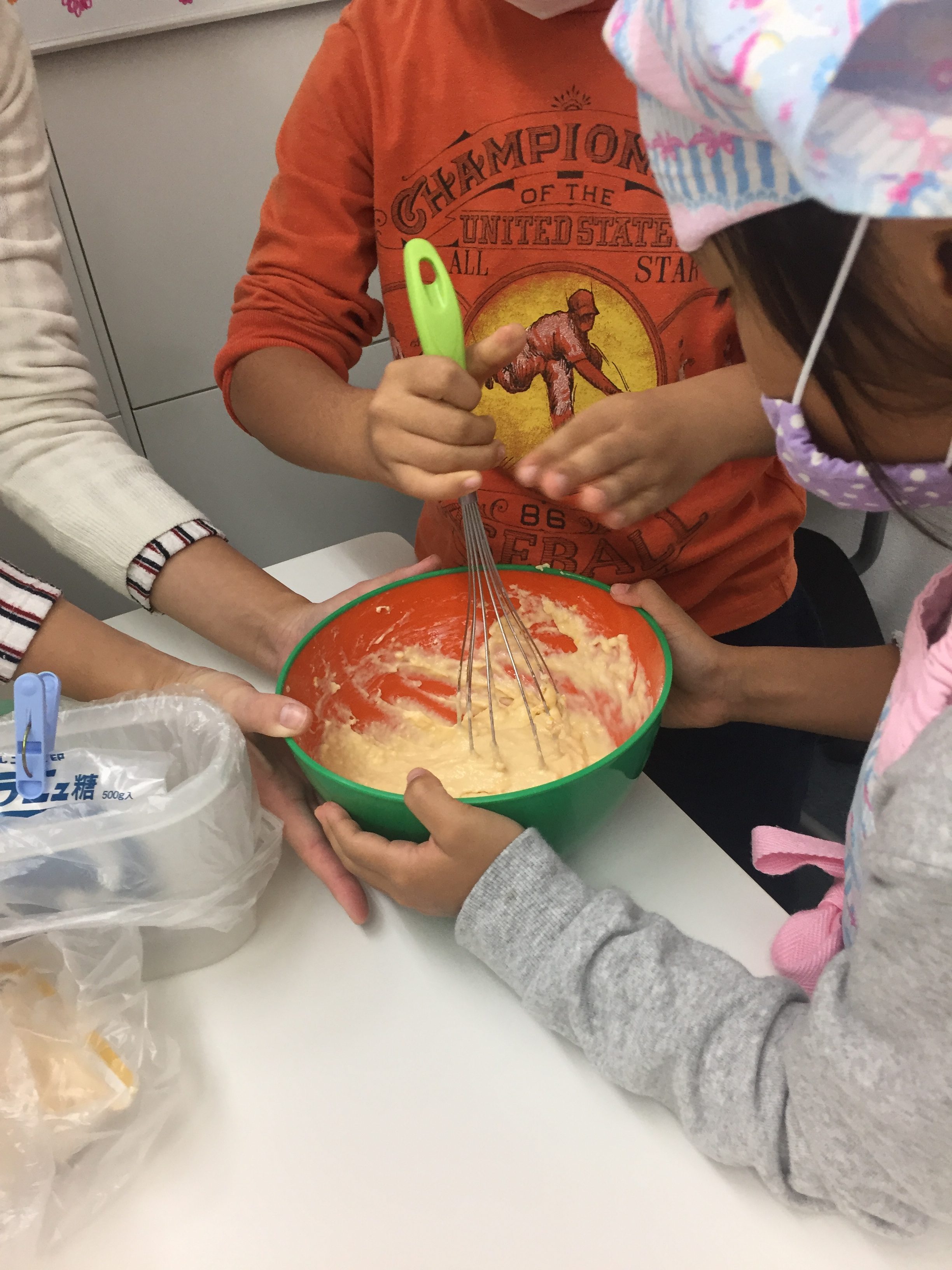 みんなで力を合わせて、クリームーになるまで混ぜます。
