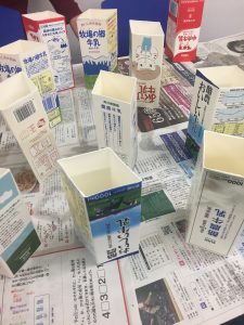 材料はこの大量の牛乳パック(Yくん、ありがとう!!)と輪ゴム。