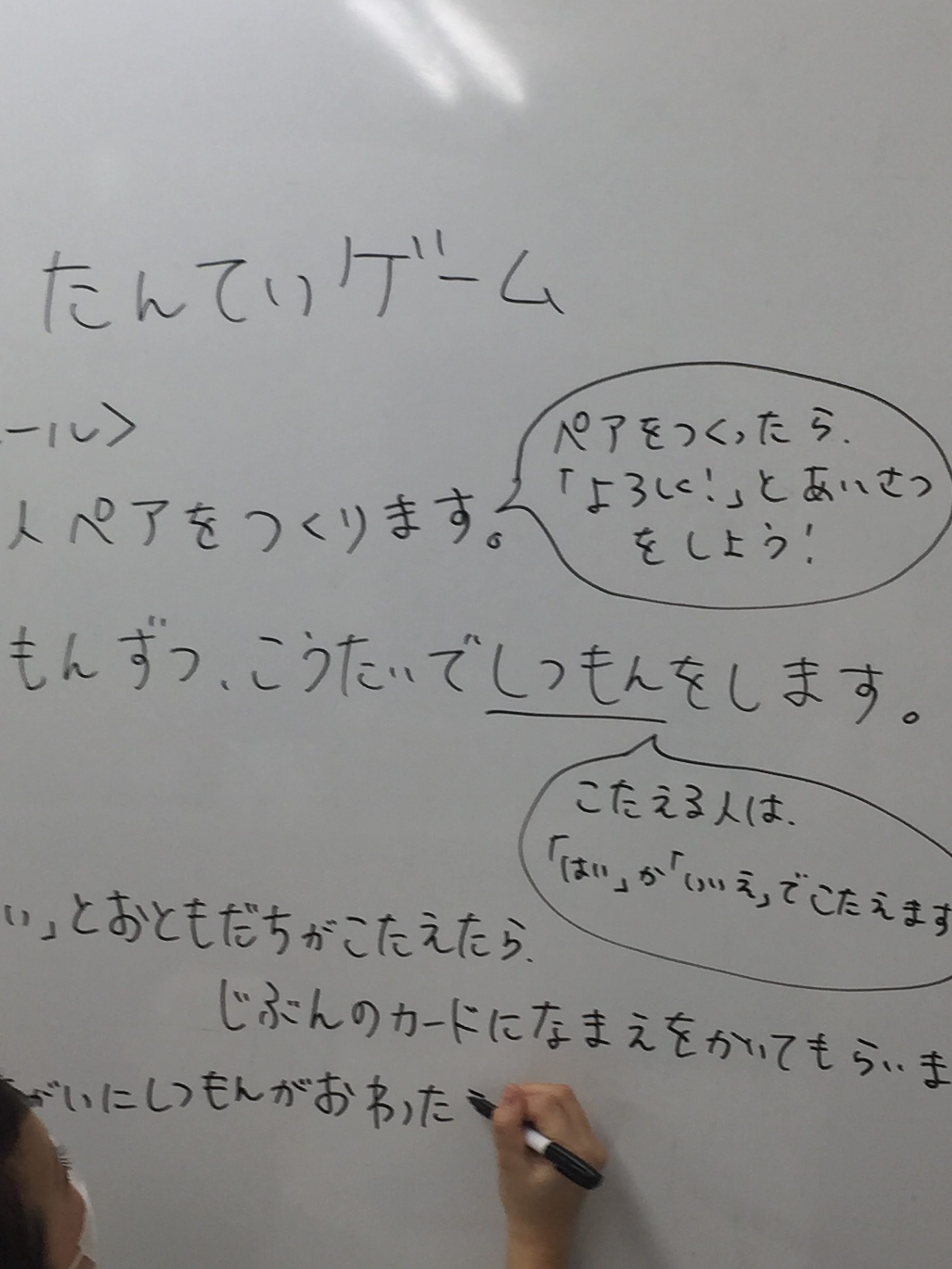 ペアを探し、質問をし合い「はい」「いいえ」で答えます。
