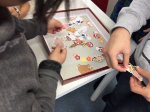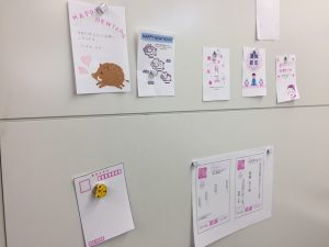 次に、見本を見ながら、新年の挨拶に使う言葉やどんな絵を入れたら良いのか?みんなで考えました!