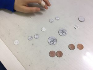 100円・10円・1円玉のみを使用し、数え方の練習!