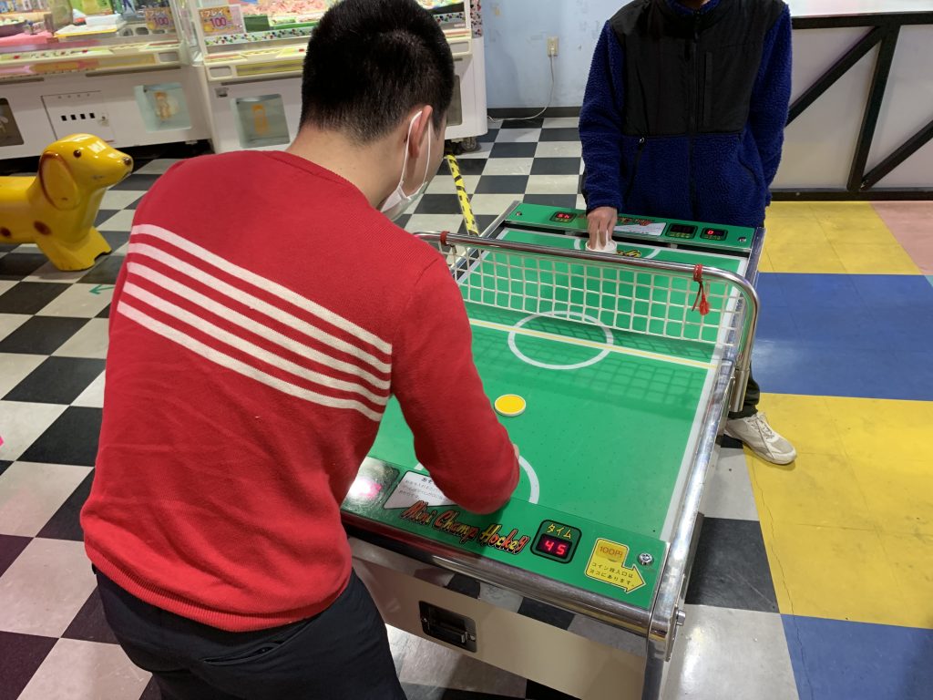 ゲームセンターで白熱していました(笑)