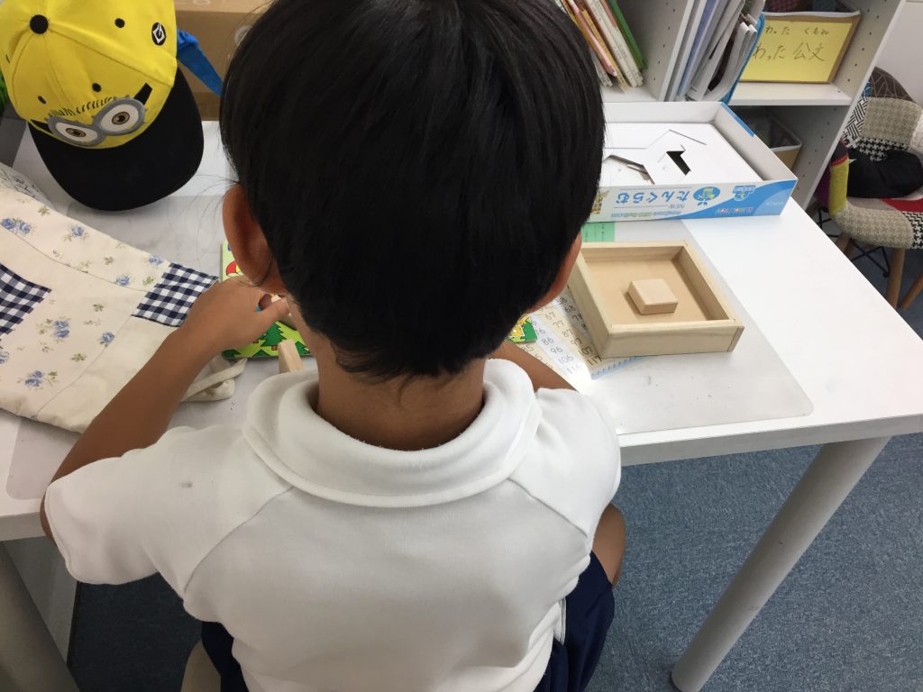2枚目 タングラムに挑戦!と思いきや、得意だったようでスラスラとはめていきます