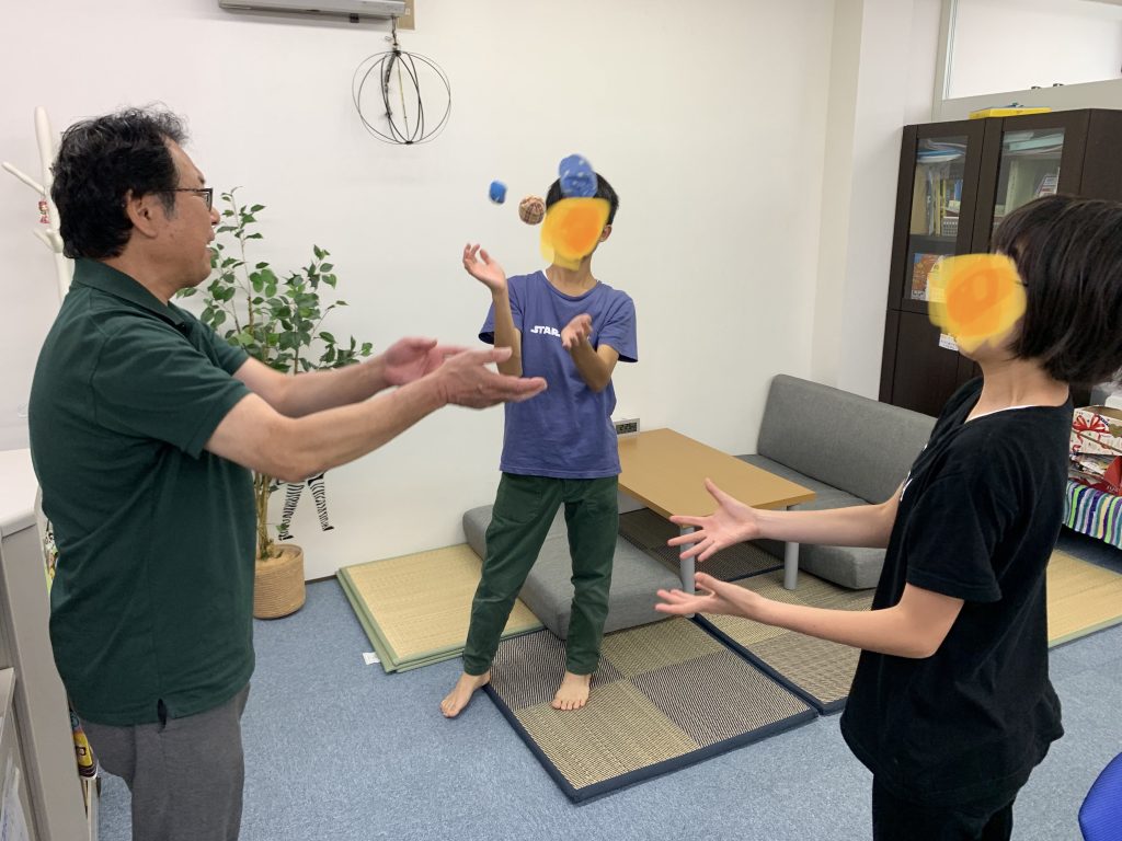 はじめは上手くいかず失敗ばかりでしたが…段々とお互いに声をかけ合ったり、手でリズムを取ったり、投げる高さの確認をしたり…少しずつチームがまとまってきました^^