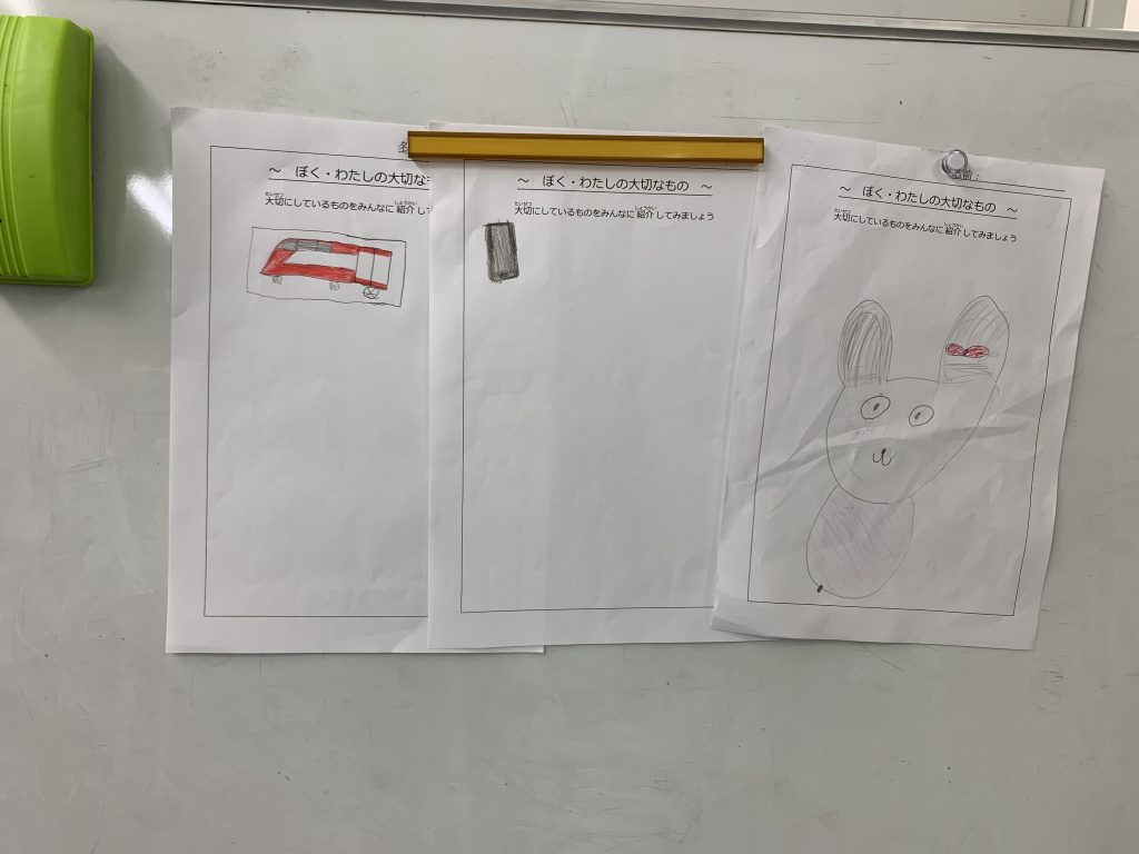 まずは、用紙に自分の大切なものの絵を書きました!そして1人ずつ、前に出てその絵をみんなに披露しながら、それは何なのか?どうして大切なのか?を発表してもらいました。