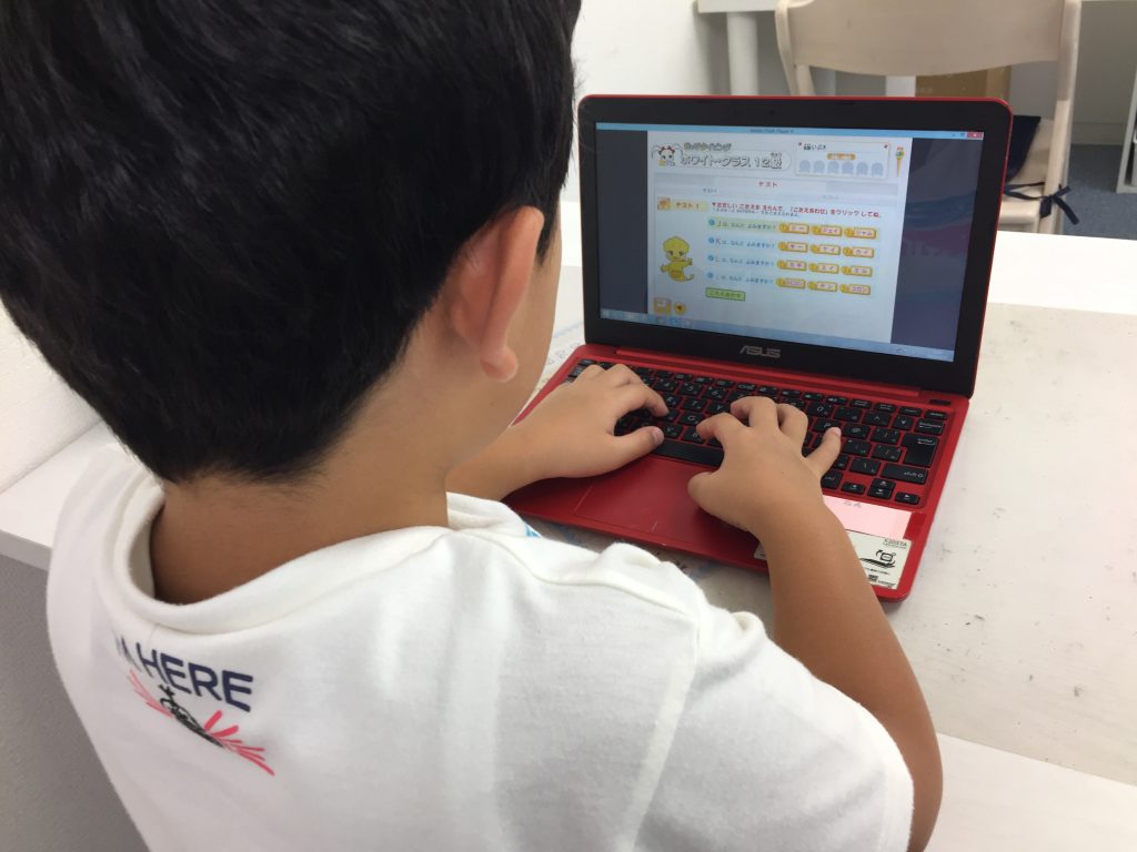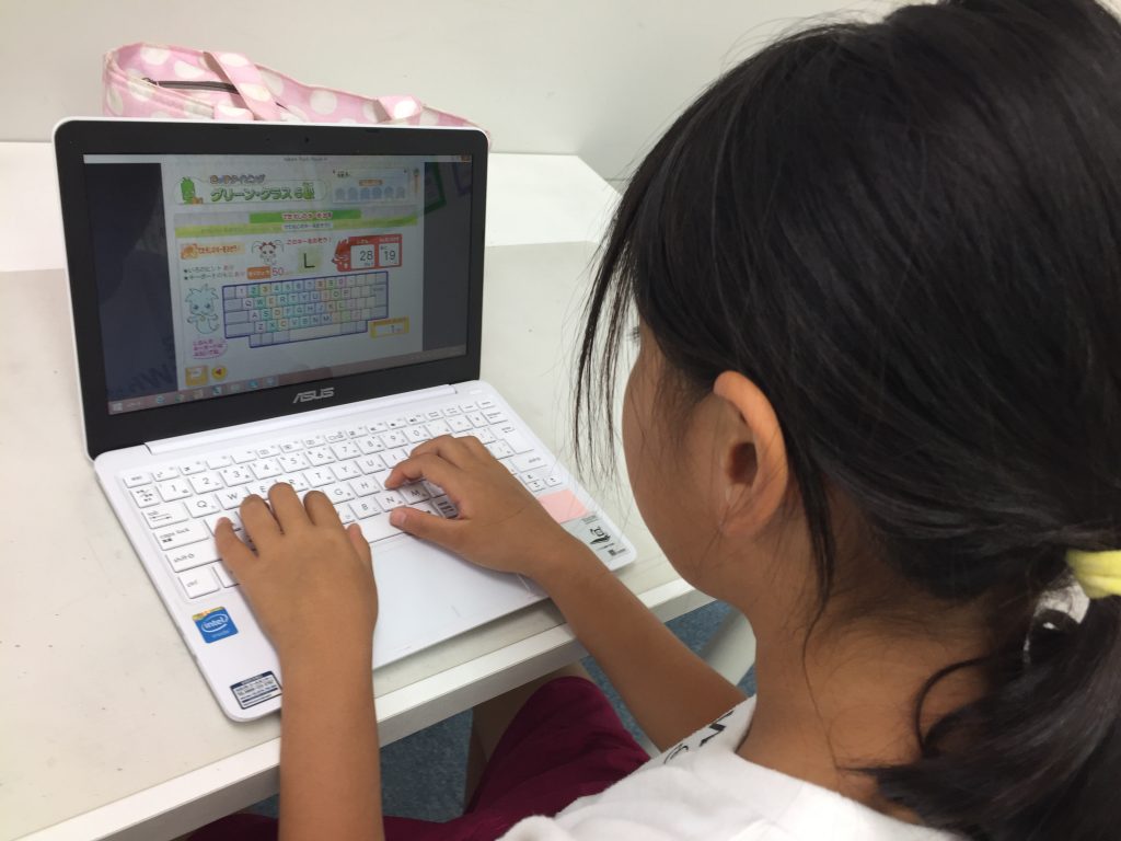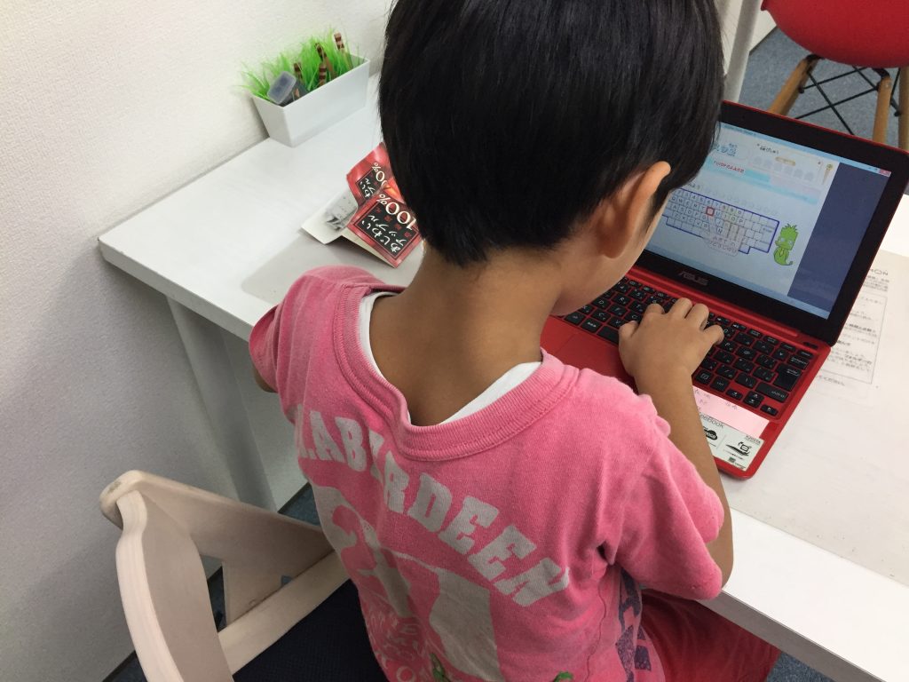 キッズタイピングというソフトを使用して指の位置やアルファベットの読み方などをゲーム感覚で学んでいきます♪