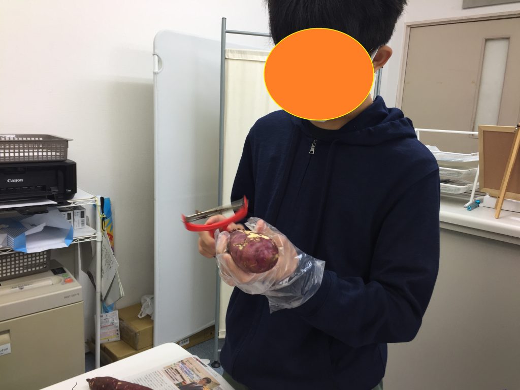 スクール利用のお友達のおばあちゃまからいただいた、秋の味覚の王様!さつまいもを使っておやつ作りをしました❕