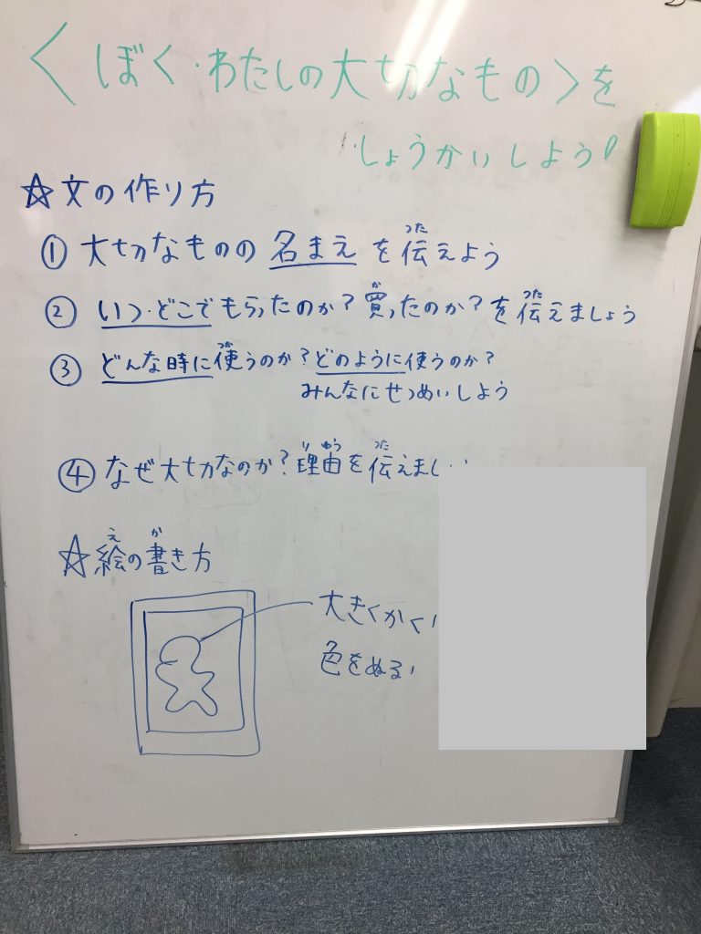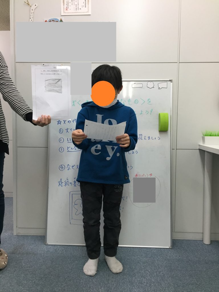 土曜日は午後からSSTを行いました!内容はタイトルの通り、”ぼく・わたしの大切なもの”をテーマに、絵・作文・発表をしてもらいました。