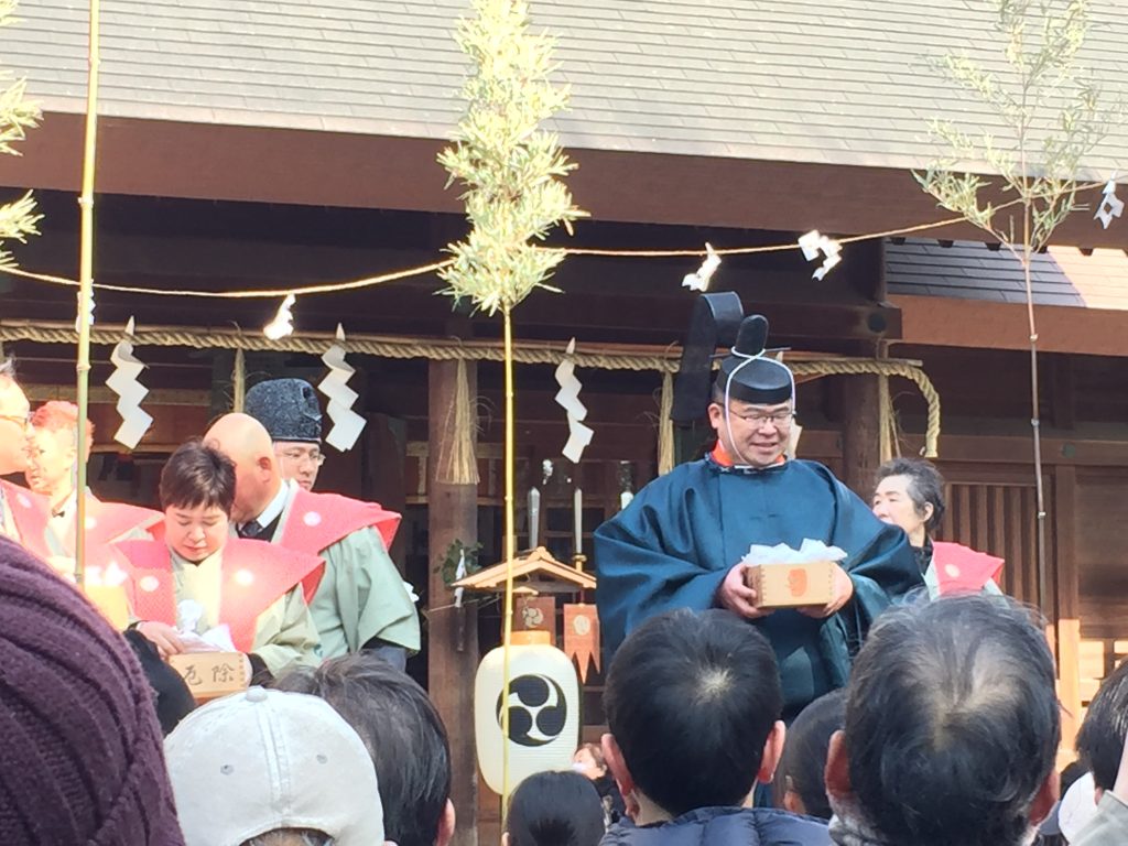 私たちが到着すると境内ではちょうど『開運飴まき』の行事が行われるタイミングでした。