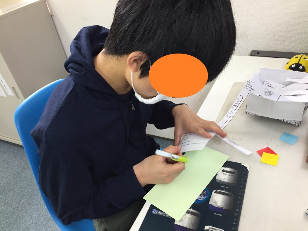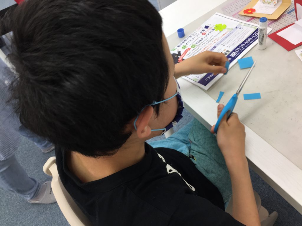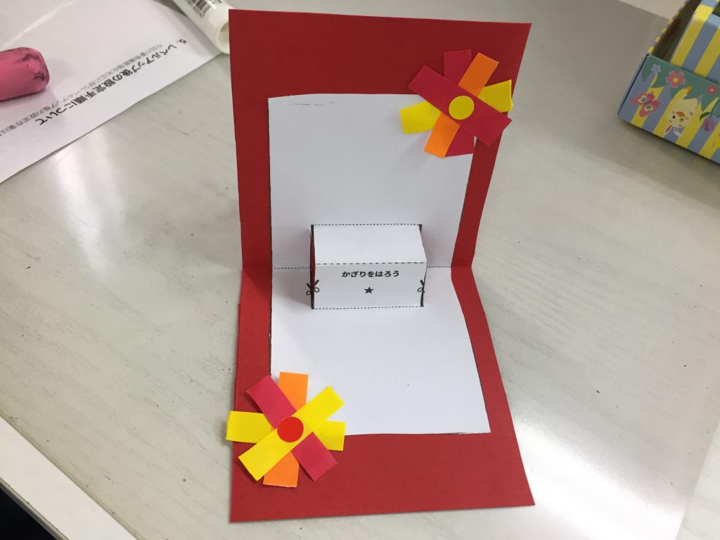 今年は立体型のメッセージカードで、台紙や飾り・レイアウト等はみんなそれぞれ選び考え作成しました♪