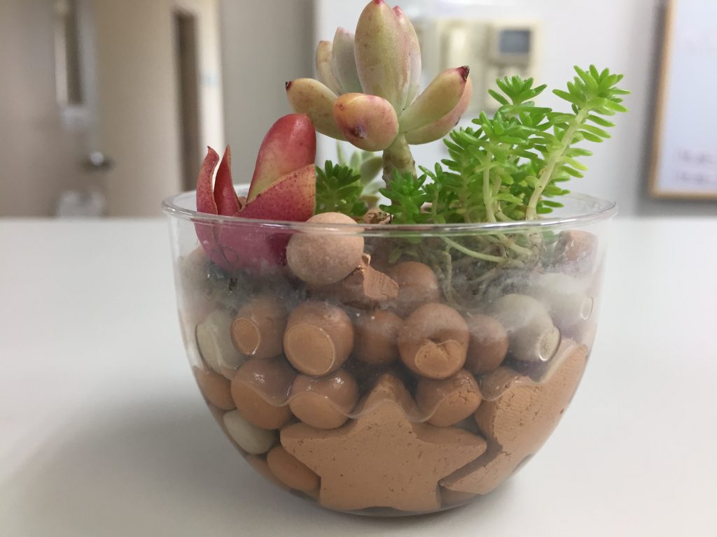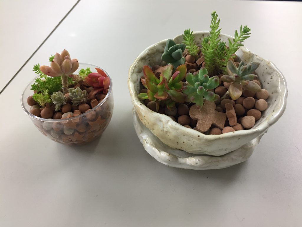 スクールの部屋にも最近多肉植物の寄せ植えが仲間入りし、子どもたちや職員を出迎えてくれています