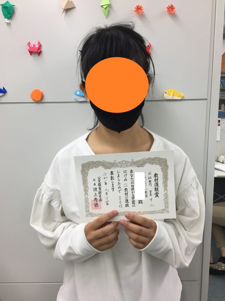 進級をすればもちろん教材も難しくなりますが…賞状をもらえたことを機に、このまま引き続き良いモチベーションでがんばっていって欲しいなぁ~と思います!