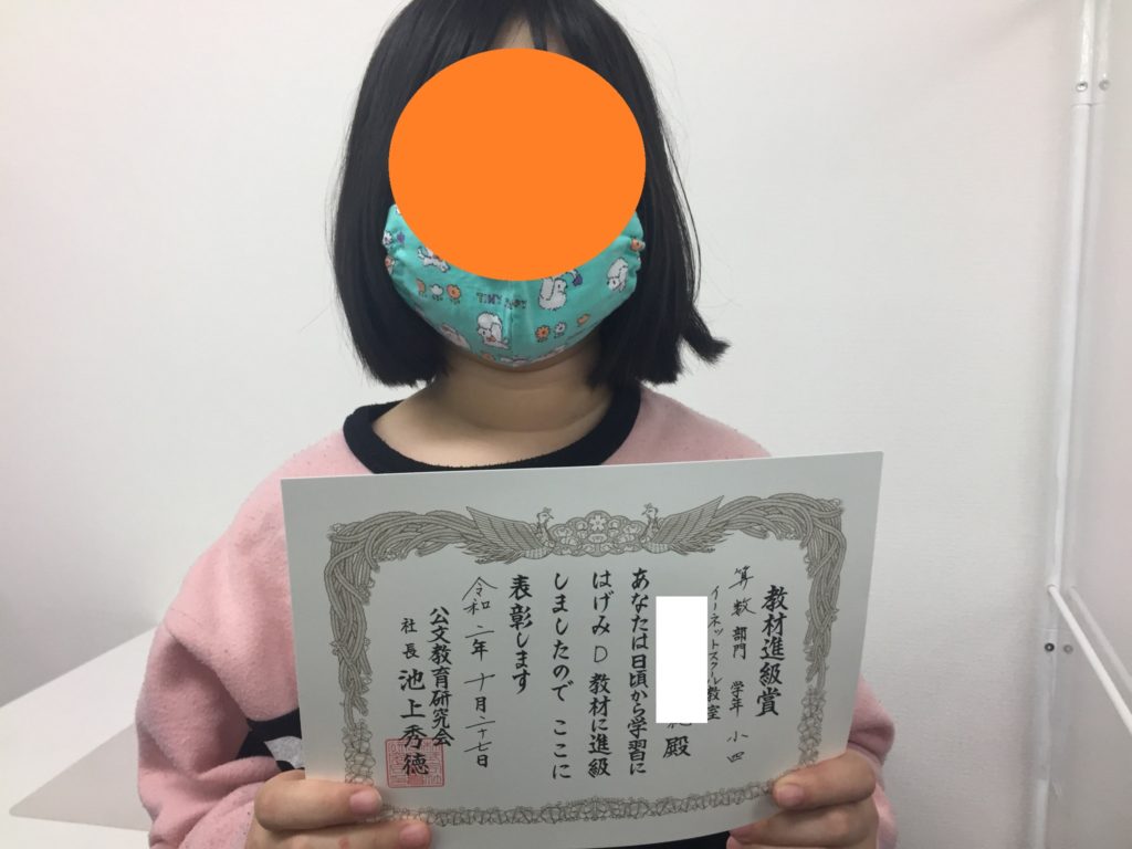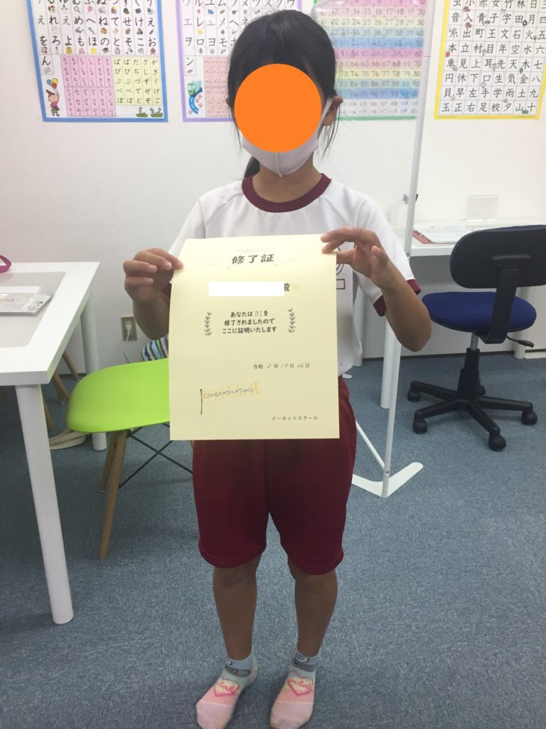 先月も、計5名の子がくもん教材の進級や修了をしました!