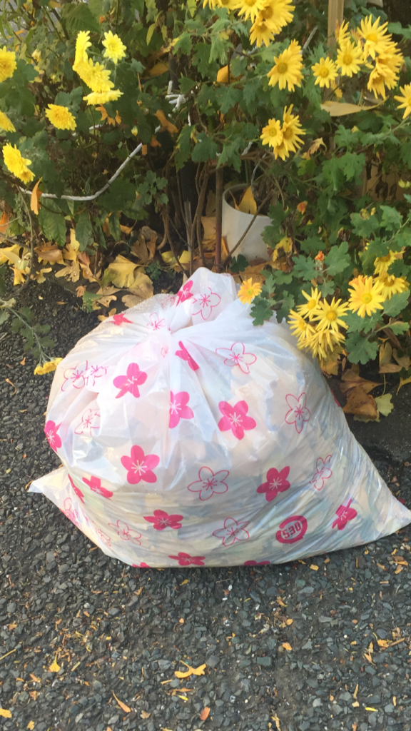 なんと先日からイチョウの枝の剪定作業が行われています。 思えば 落ち続ける大量の葉は、いつも午後には片づけられ、つつじの花の530運動用アートごみ袋があちこちで花を咲かせていました。毎日掃除をしてくれていた地域の皆さんに感謝です!