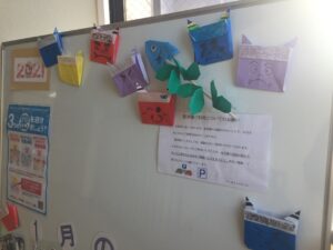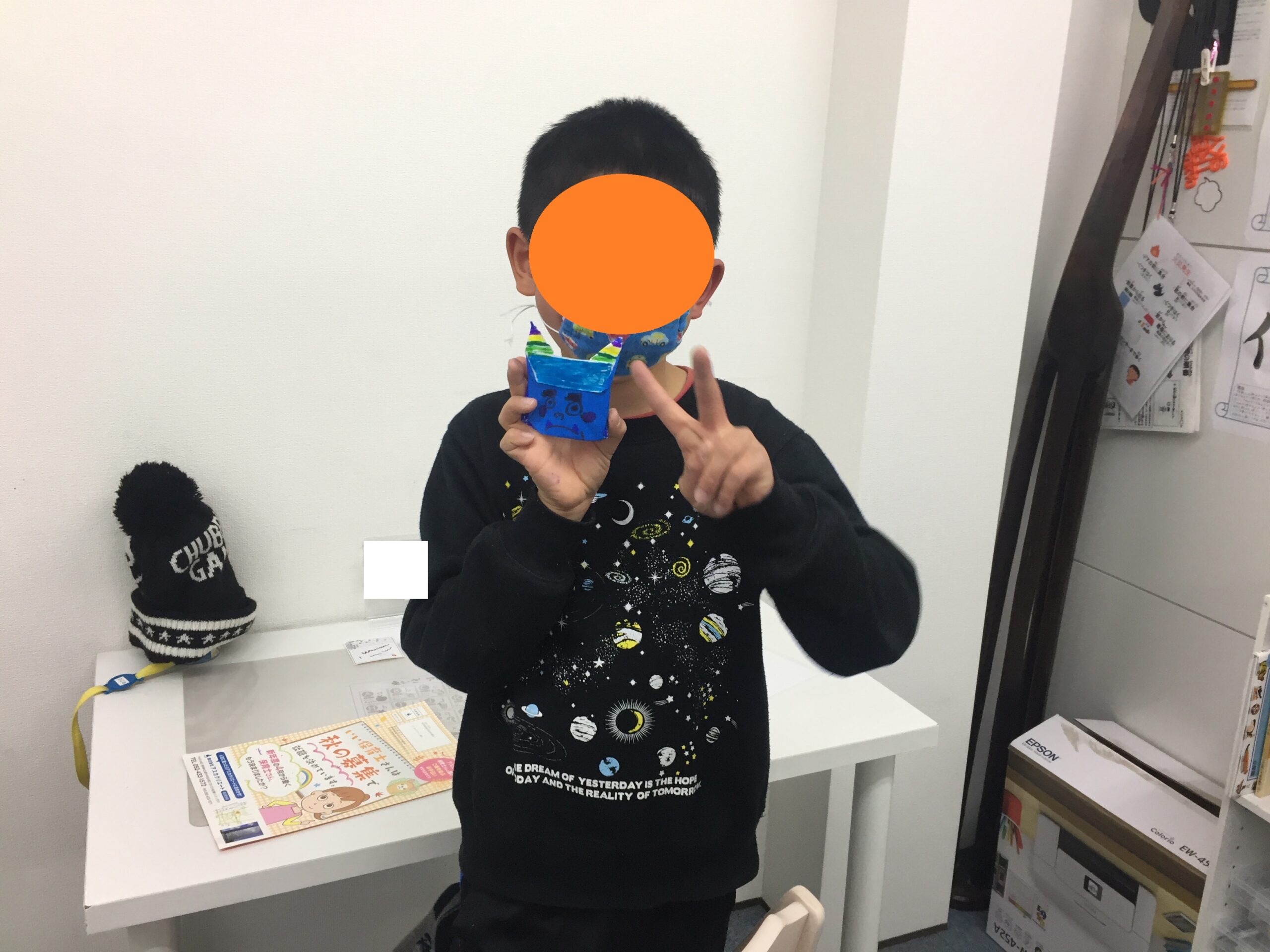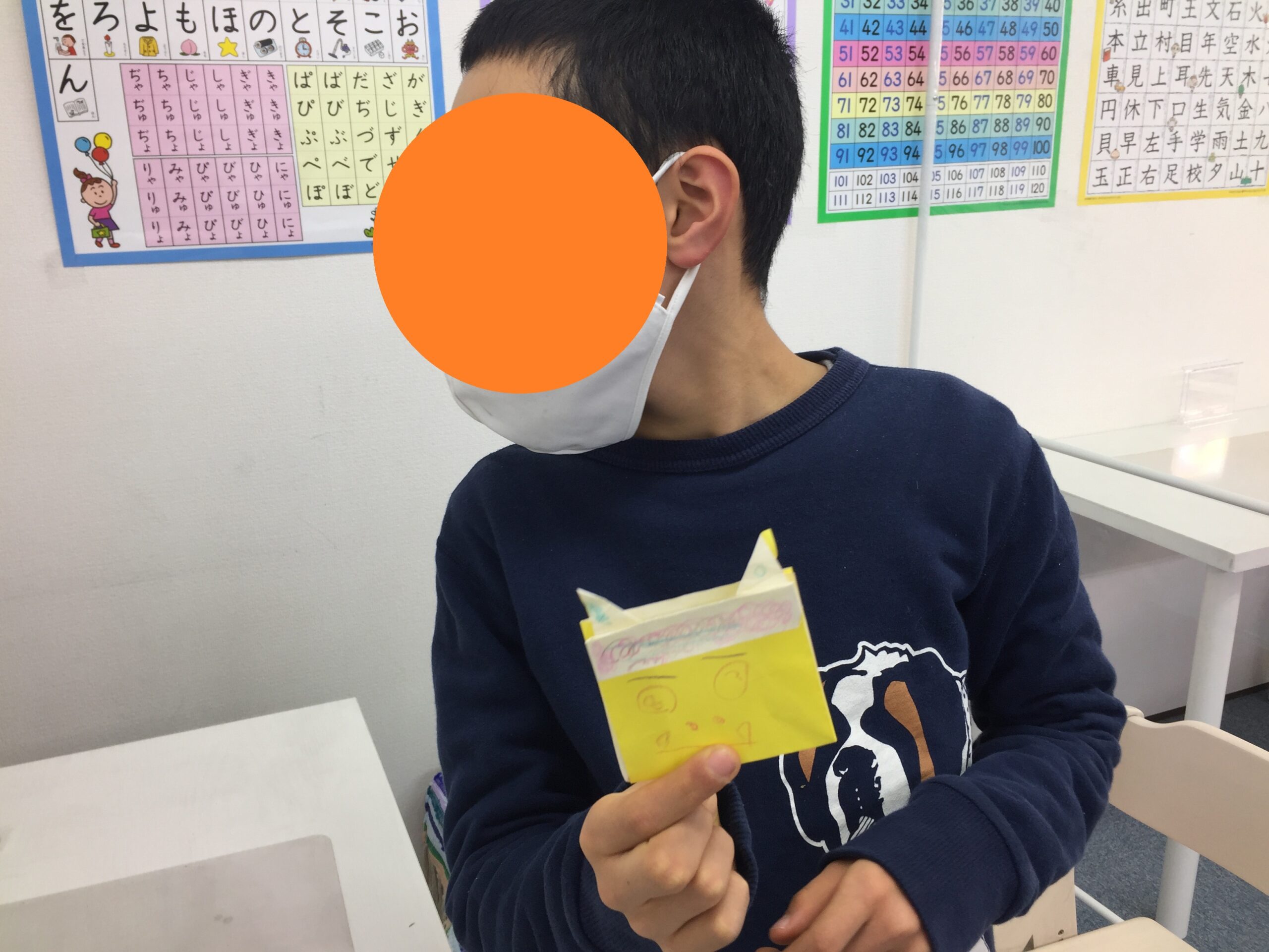 イーネットの子どもたちも、勉強の合間におにのさいふを折りました♪写真では、わかりづらい!?ですが、顔がポケットになっています!