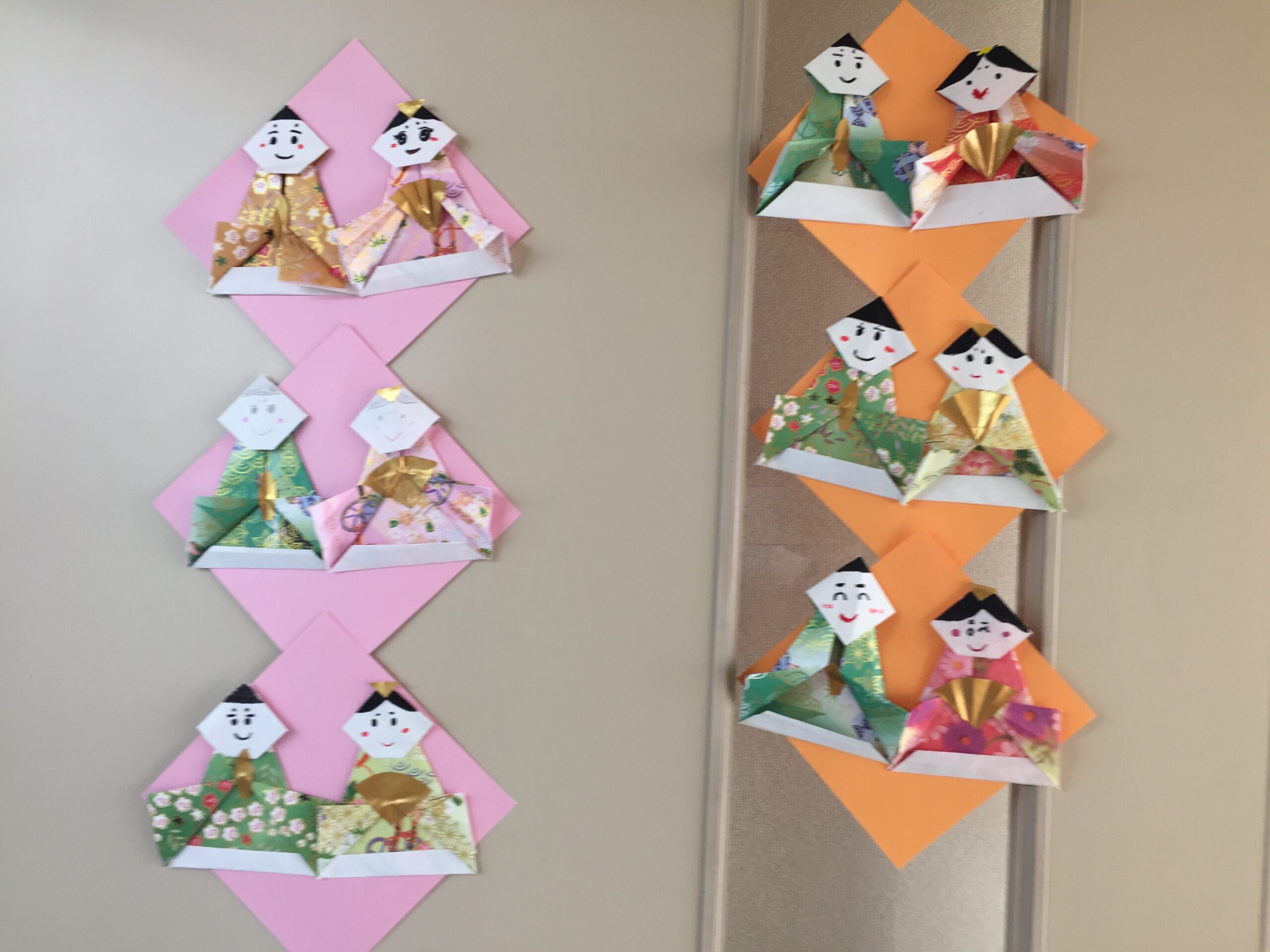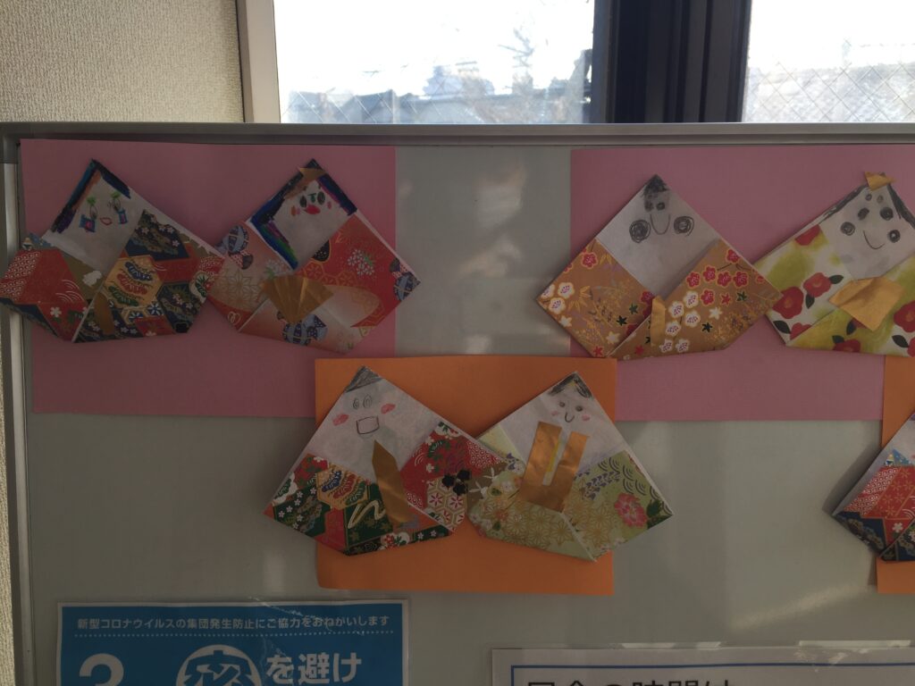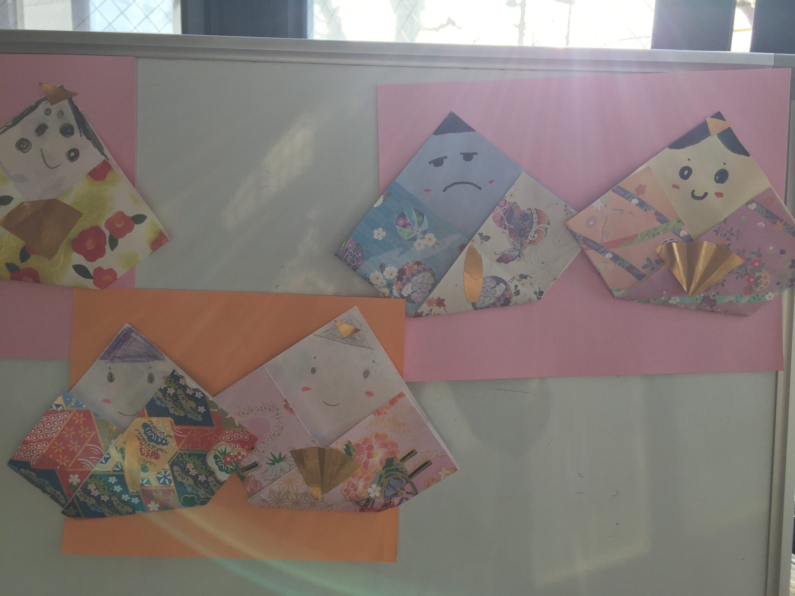 スクールも、子どもたちが作ってくれたひな人形で彩られました♪