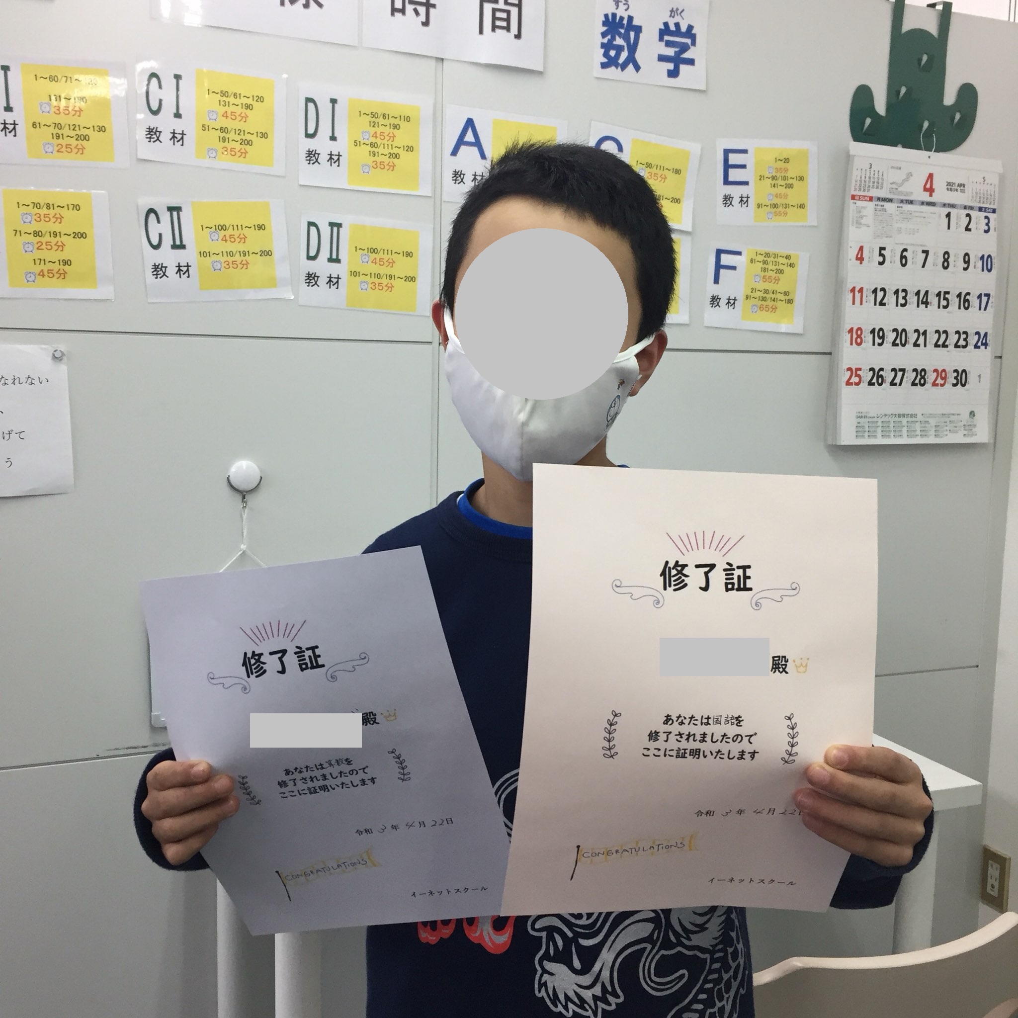 学年相当のくもん教材に上がった子、素晴らしいモチベーションでテストに取り組めた子など…