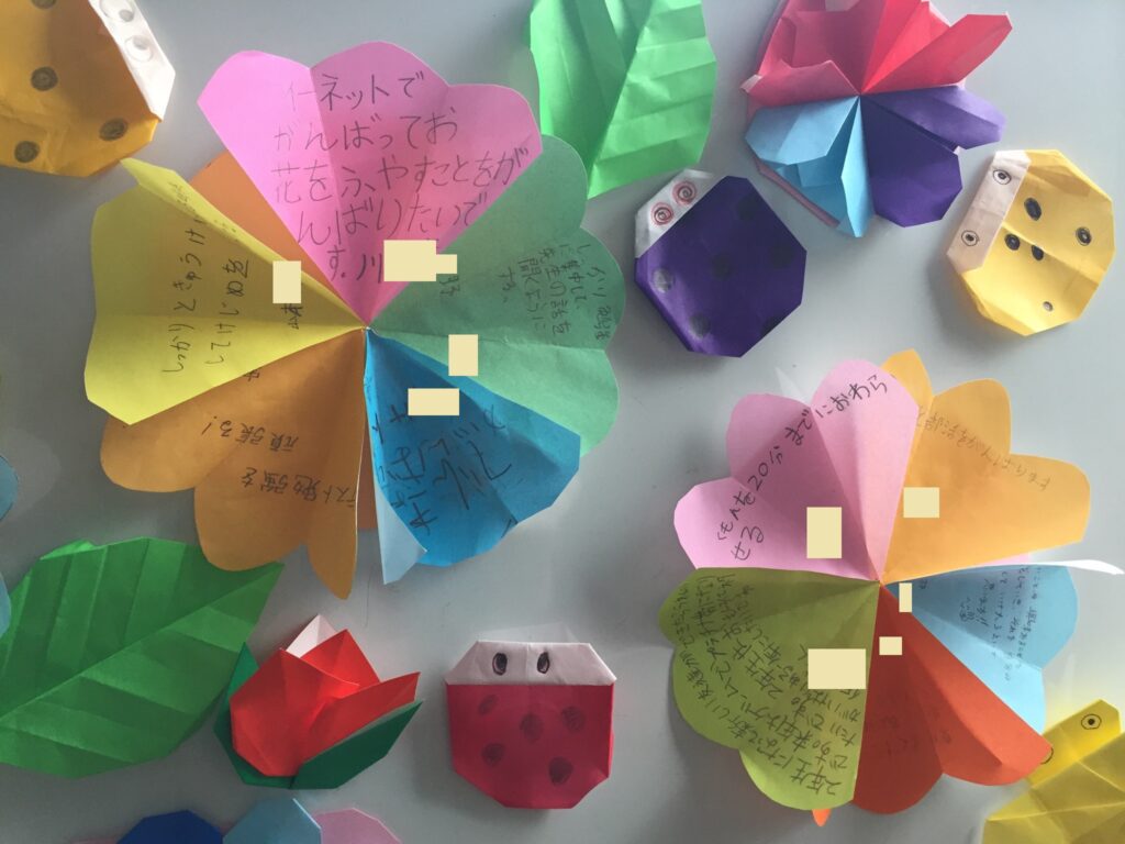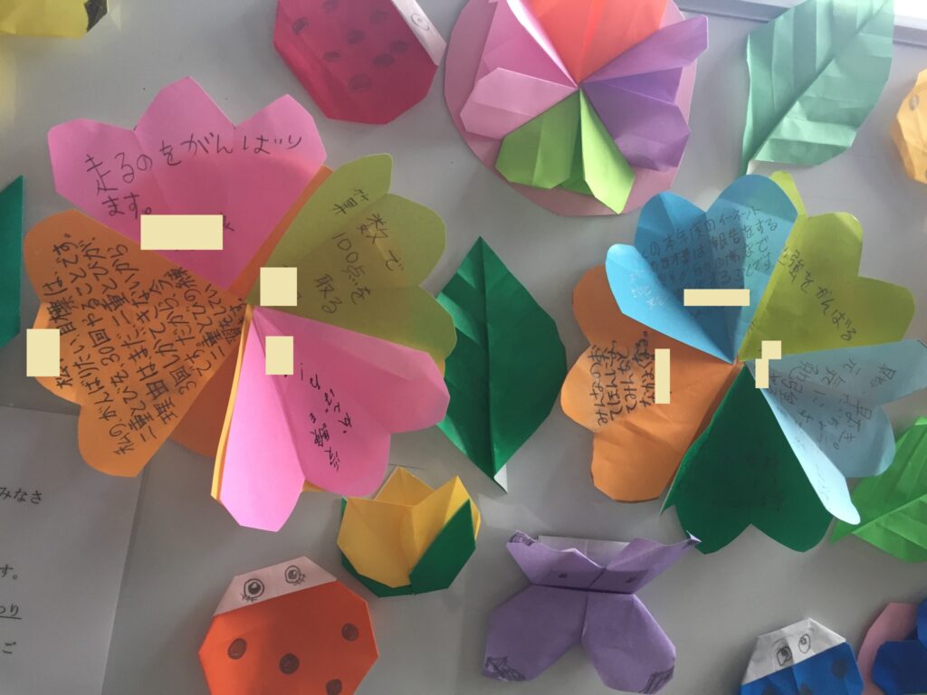 学校のこと・勉強のこと・イーネットのこと…それぞれ考えて書いてもらい、お花になりました🌼