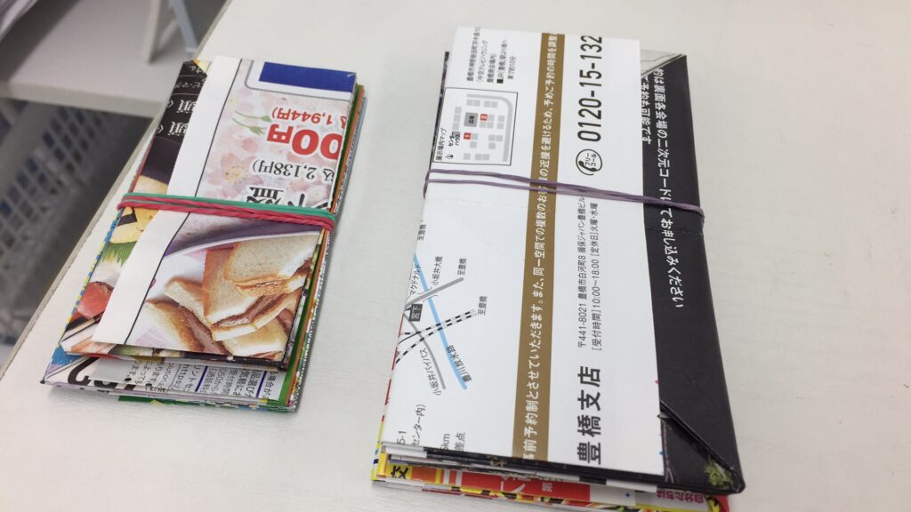 故意に1枚破れた広告を入れておいたのですが、気づいたものの折ってしまったとのこと!「もらった相手の気持ちになった時にどうかな?」と一度考えてもらい、次は折る前に相談できると良いねと振り返りをしました👍