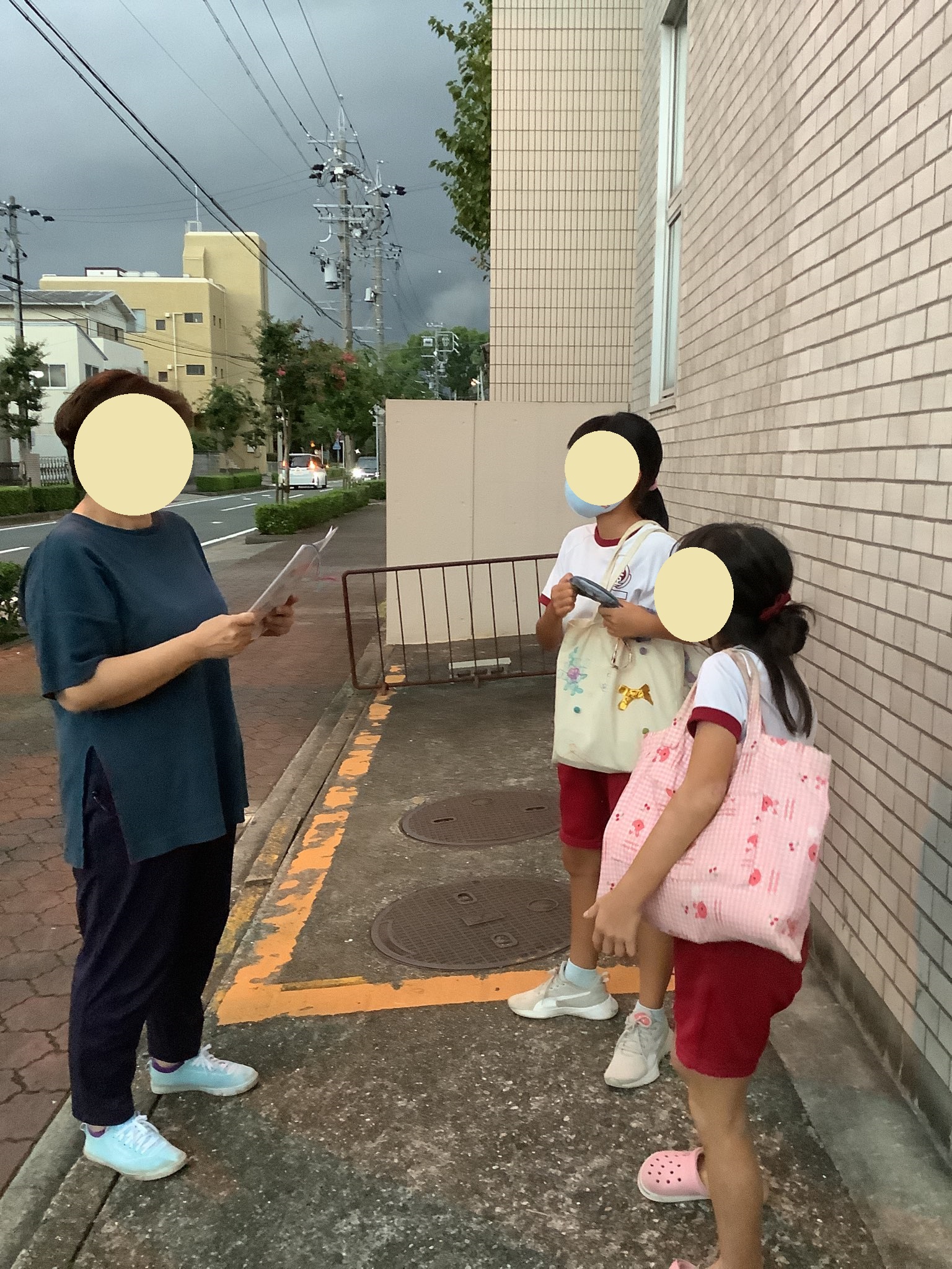 避難の手順をみんなで確認してから避難所へ向けて出発です✋