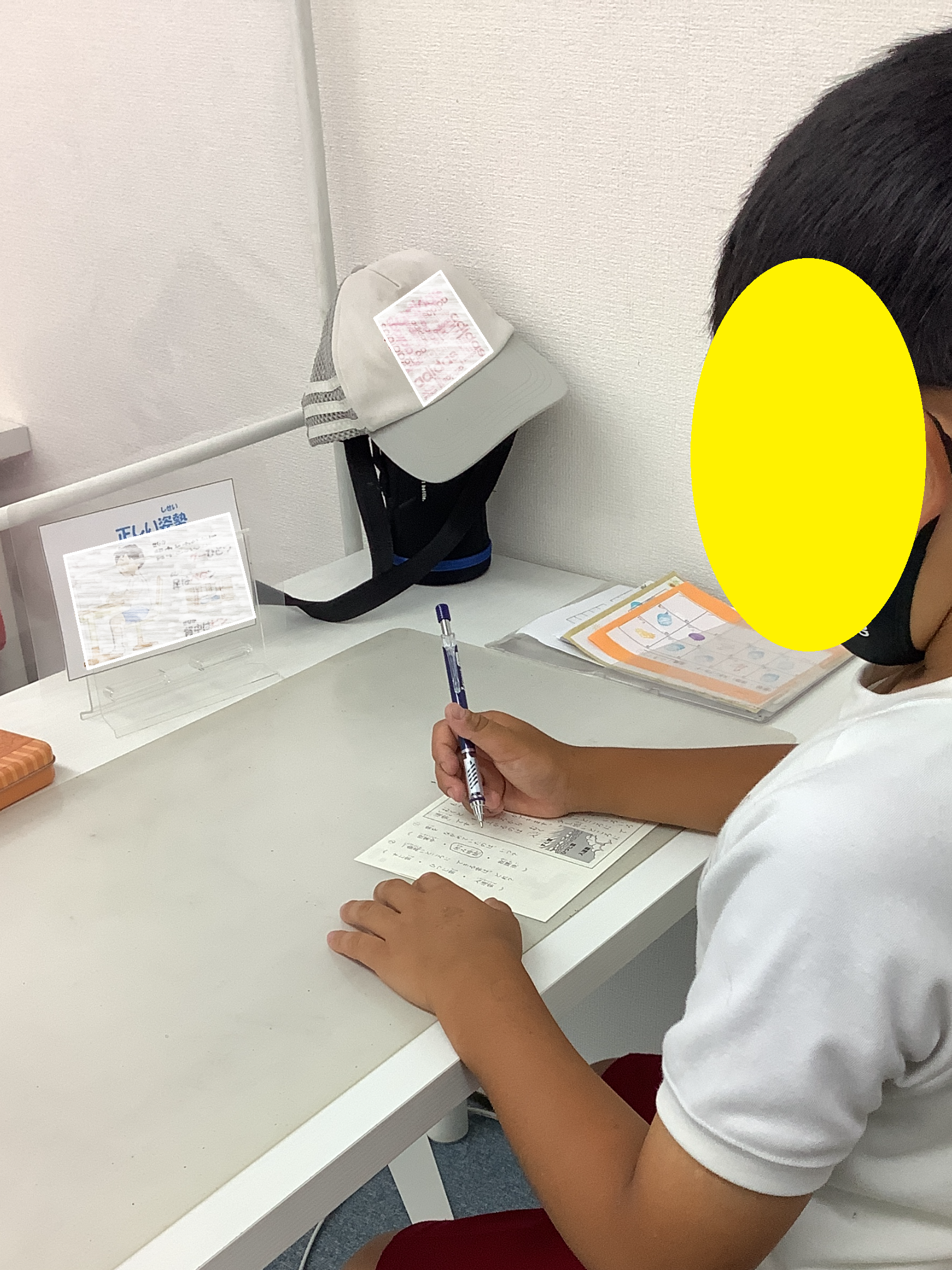 必要に応じてプレートを学習中机に置いてもらい、「今の姿勢はいいかな?」と常に意識できるようにしています。