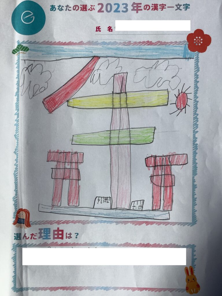 まず今年の目標を考えて、文章にしてもらうと、ほとんどの皆さんが難無く漢字1字に置き換えて書くことができました。すごいです❣