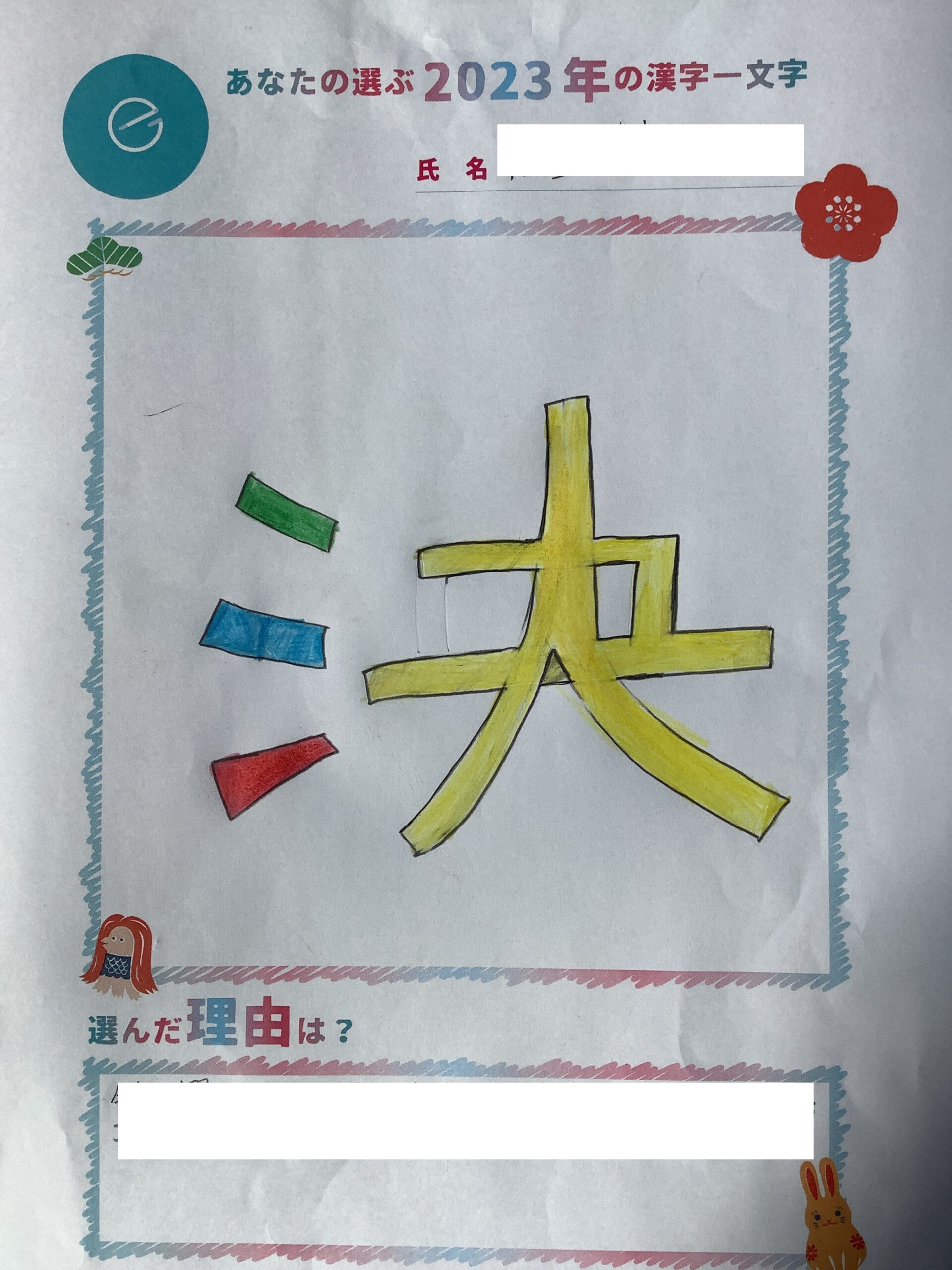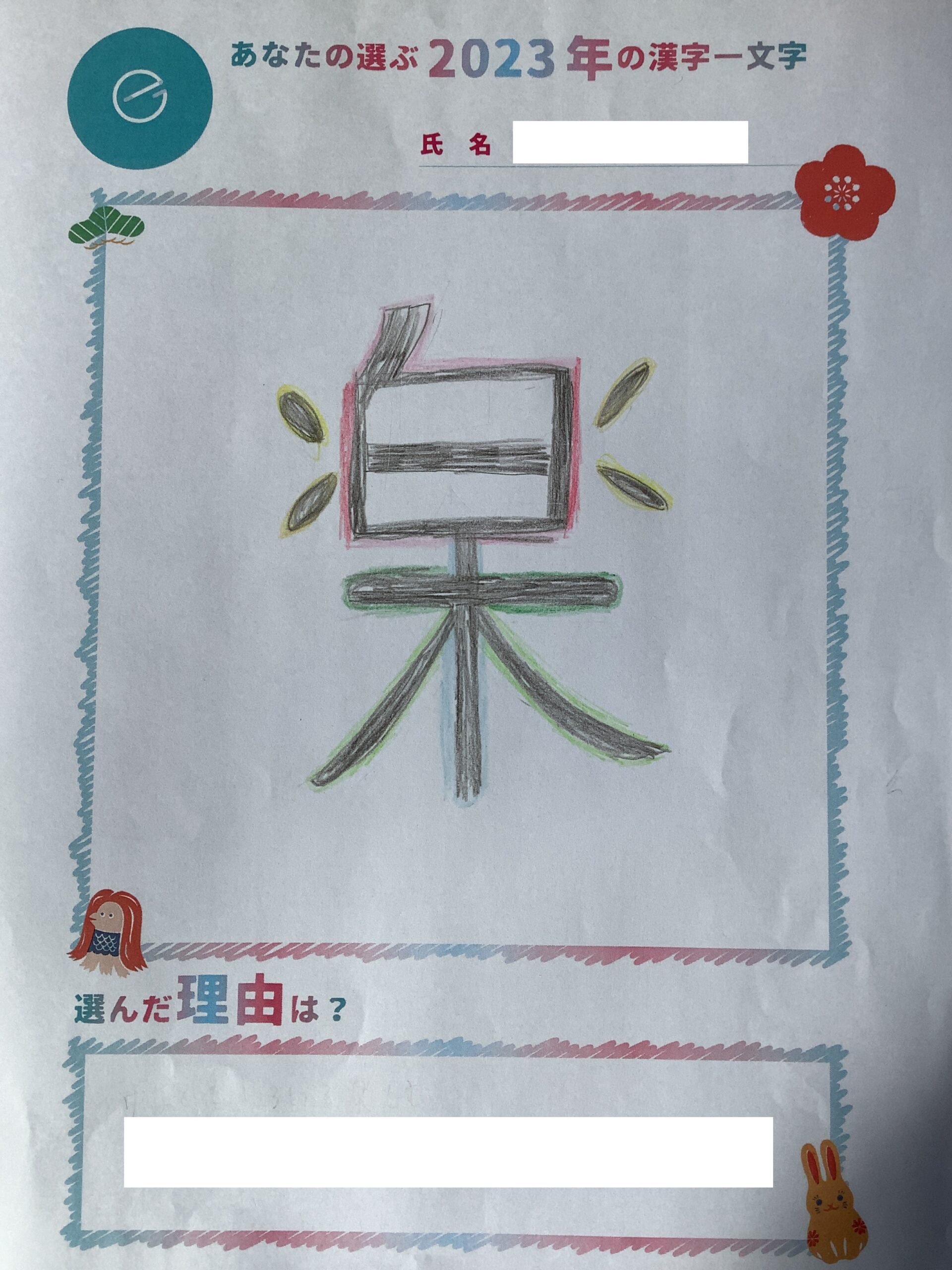 まず今年の目標を考えて、文章にしてもらうと、ほとんどの皆さんが難無く漢字1字に置き換えて書くことができました。すごいです❣