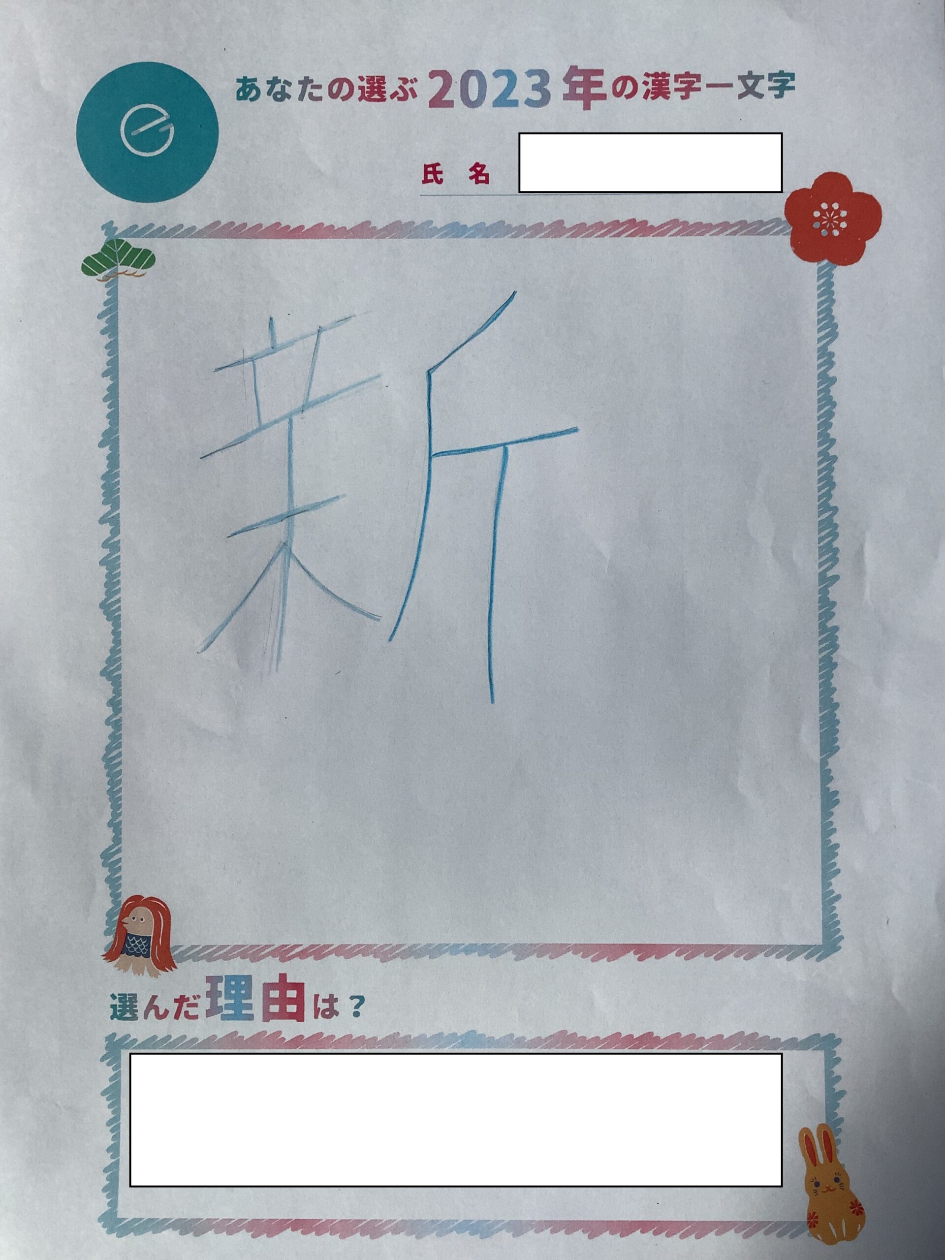 『新』という字を爽やかな水色の色鉛筆で書いてくれました🌟