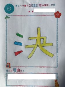漢字1字での目標書きの課題…それぞれがこの1年をどんな風に過ごしたいか?と考える良い時間になったのではないでしょうか。