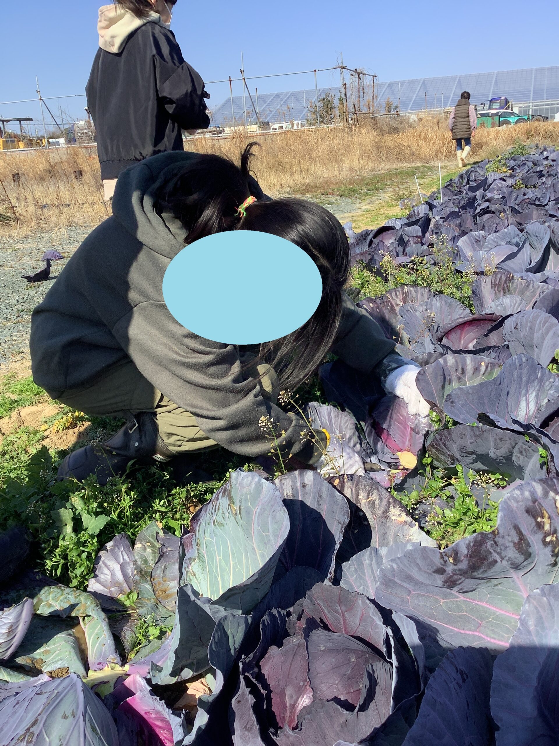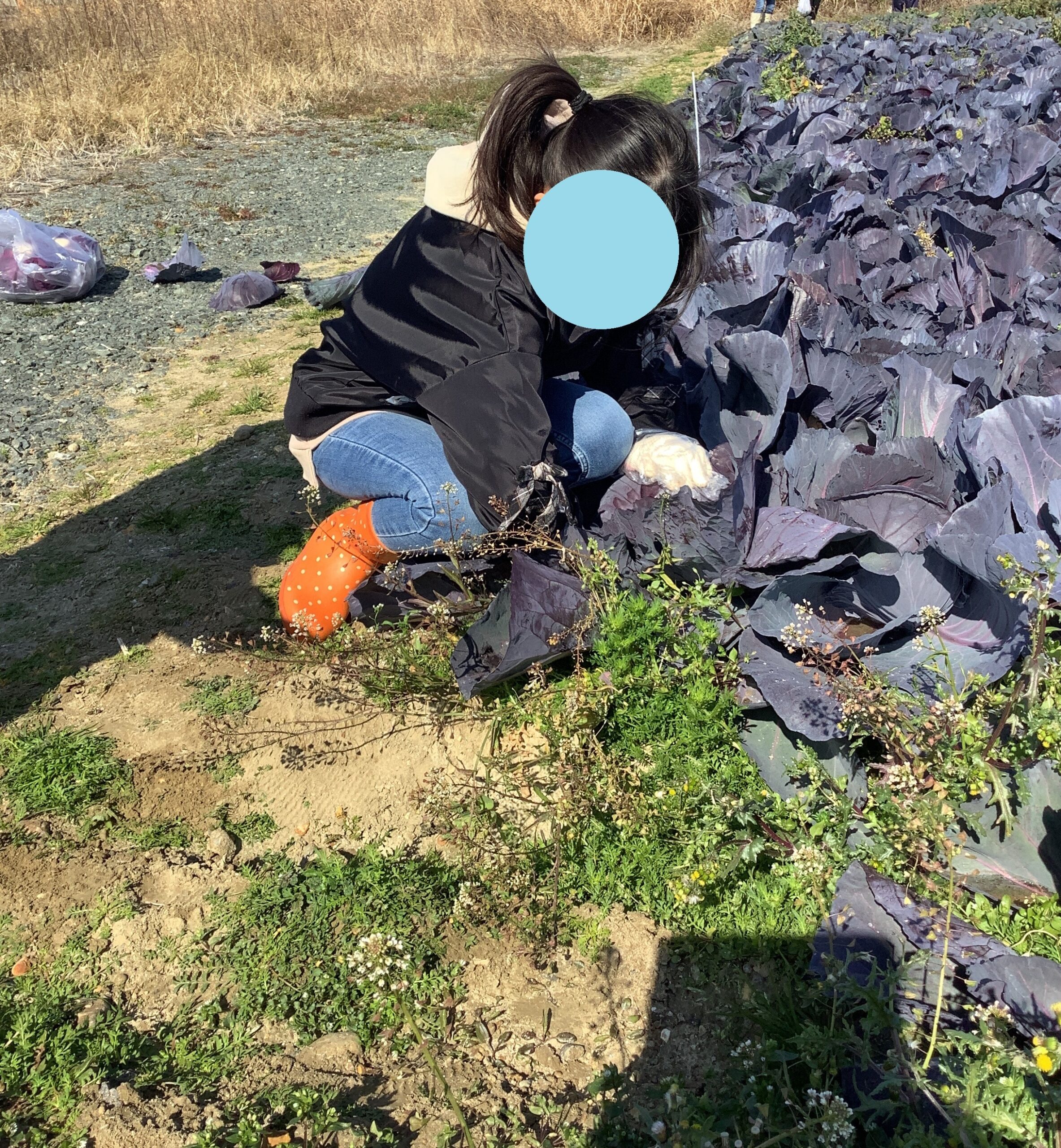 土曜日の活動でキャベツの収穫体験に行きました。大きなキャベツ、紫キャベツの収穫を行いました!