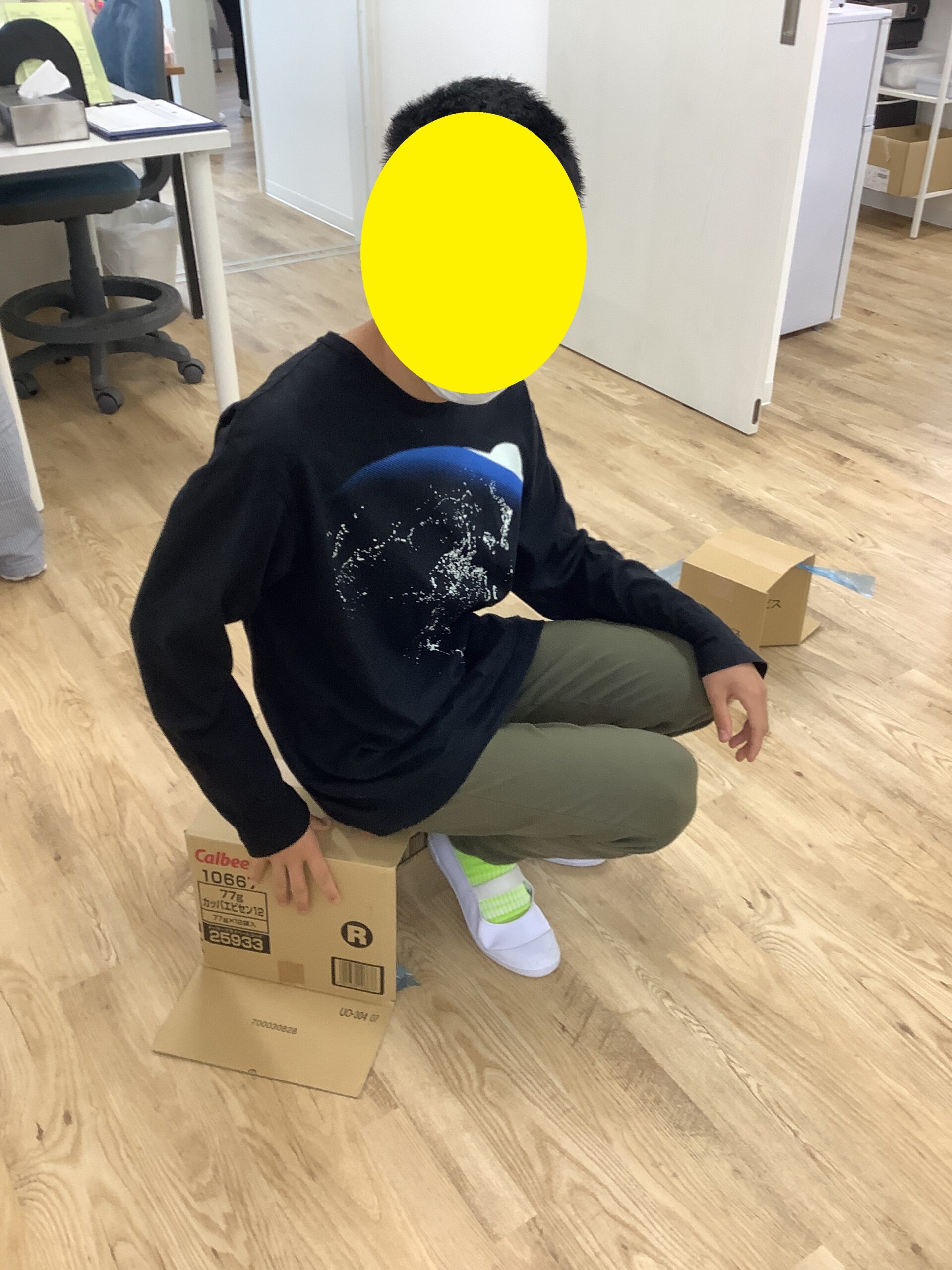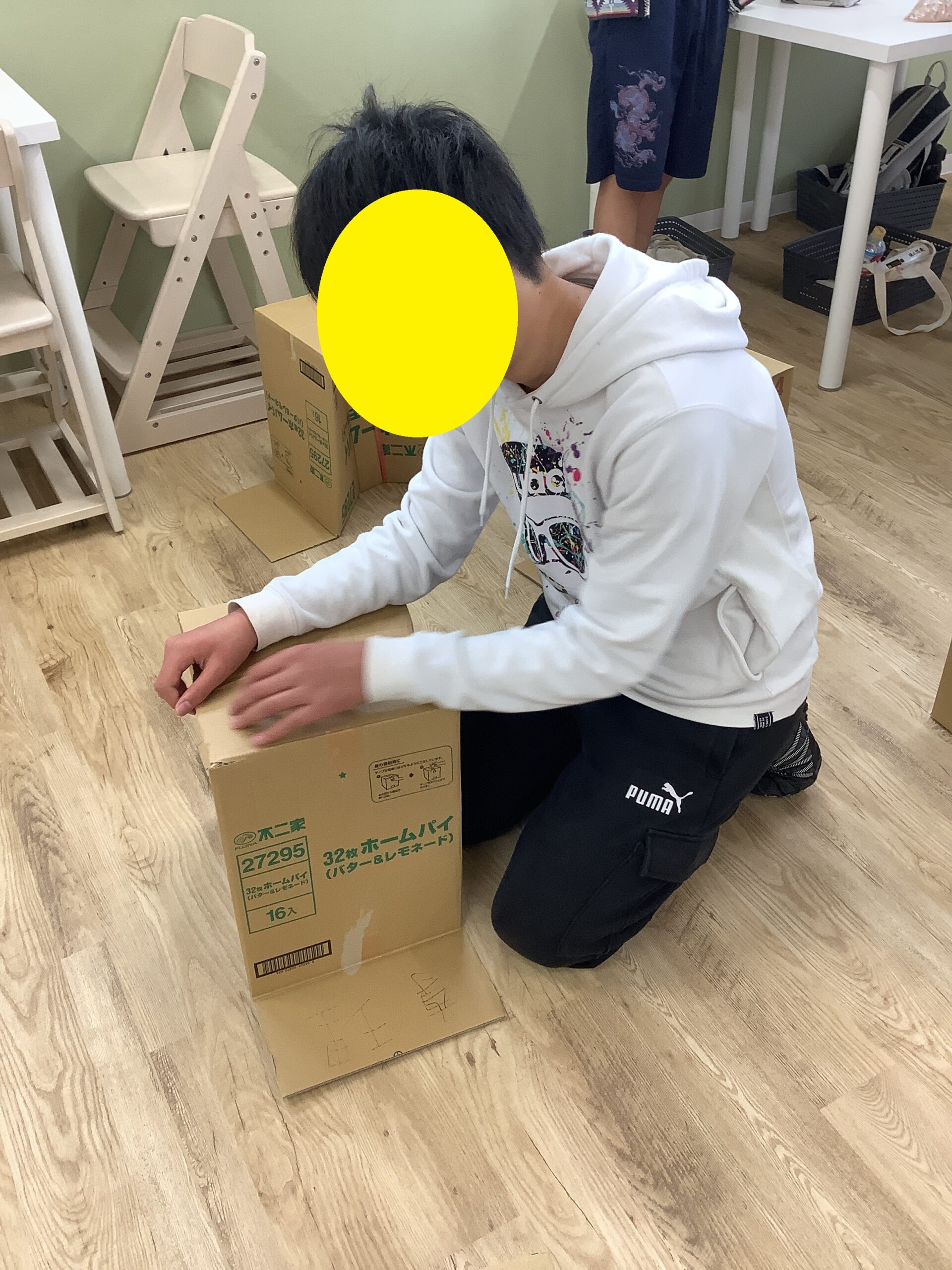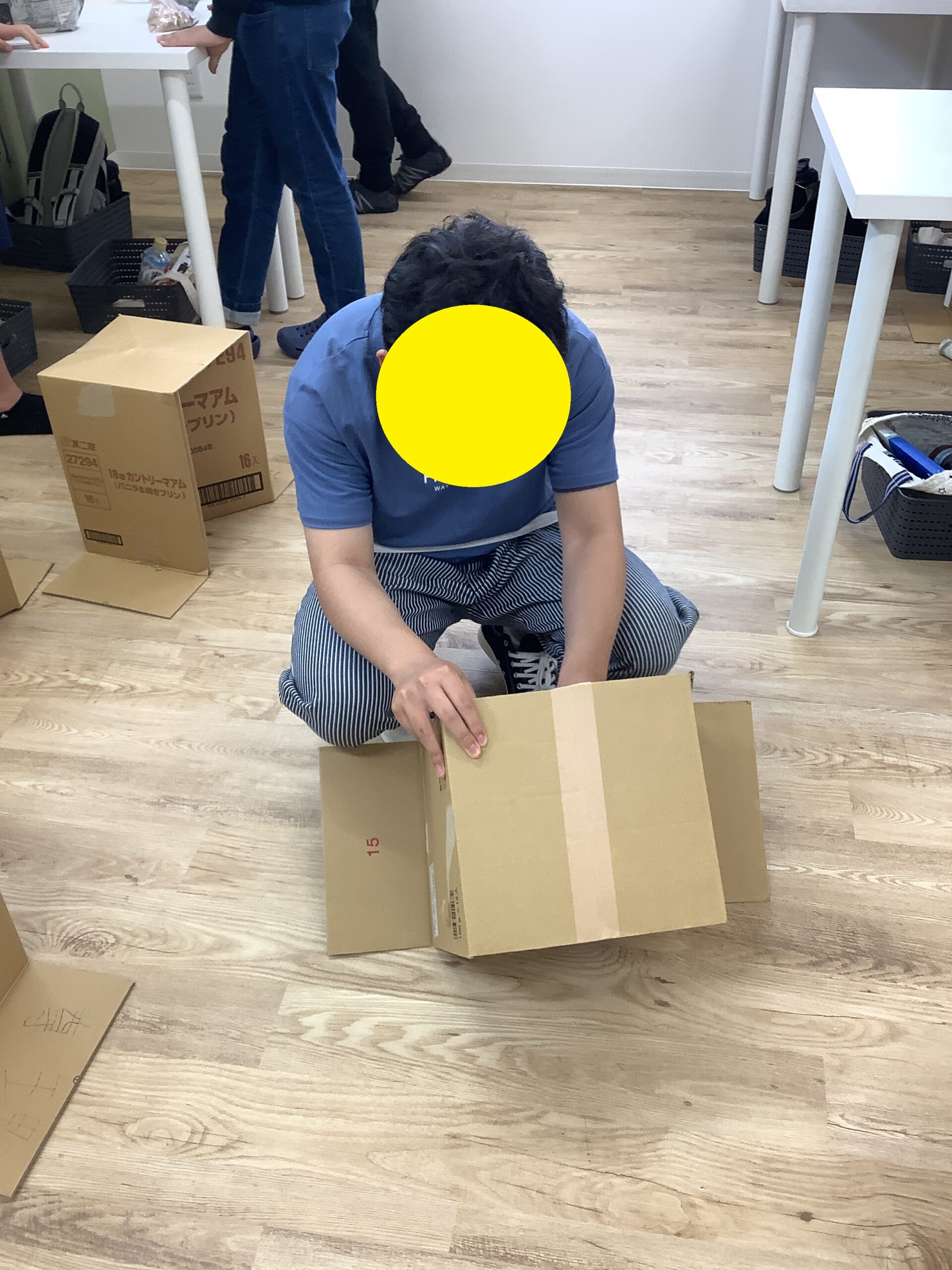災害時に役立つ『段ボールの椅子』作りからスタートしました。