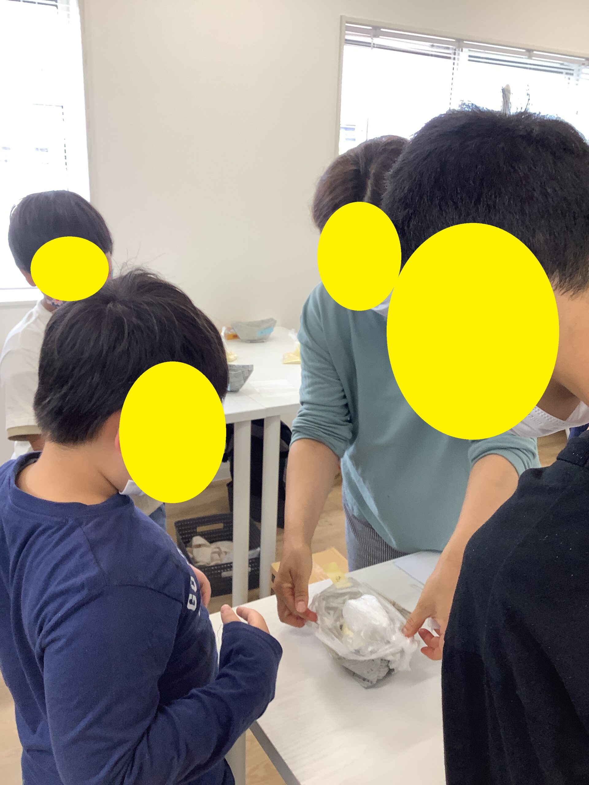 材料が口元まで付いてしまい、縛る作業に苦戦💦中の材料をなるべく下に集め、口元で縛ろうと何度もチャレンジする子もいました。