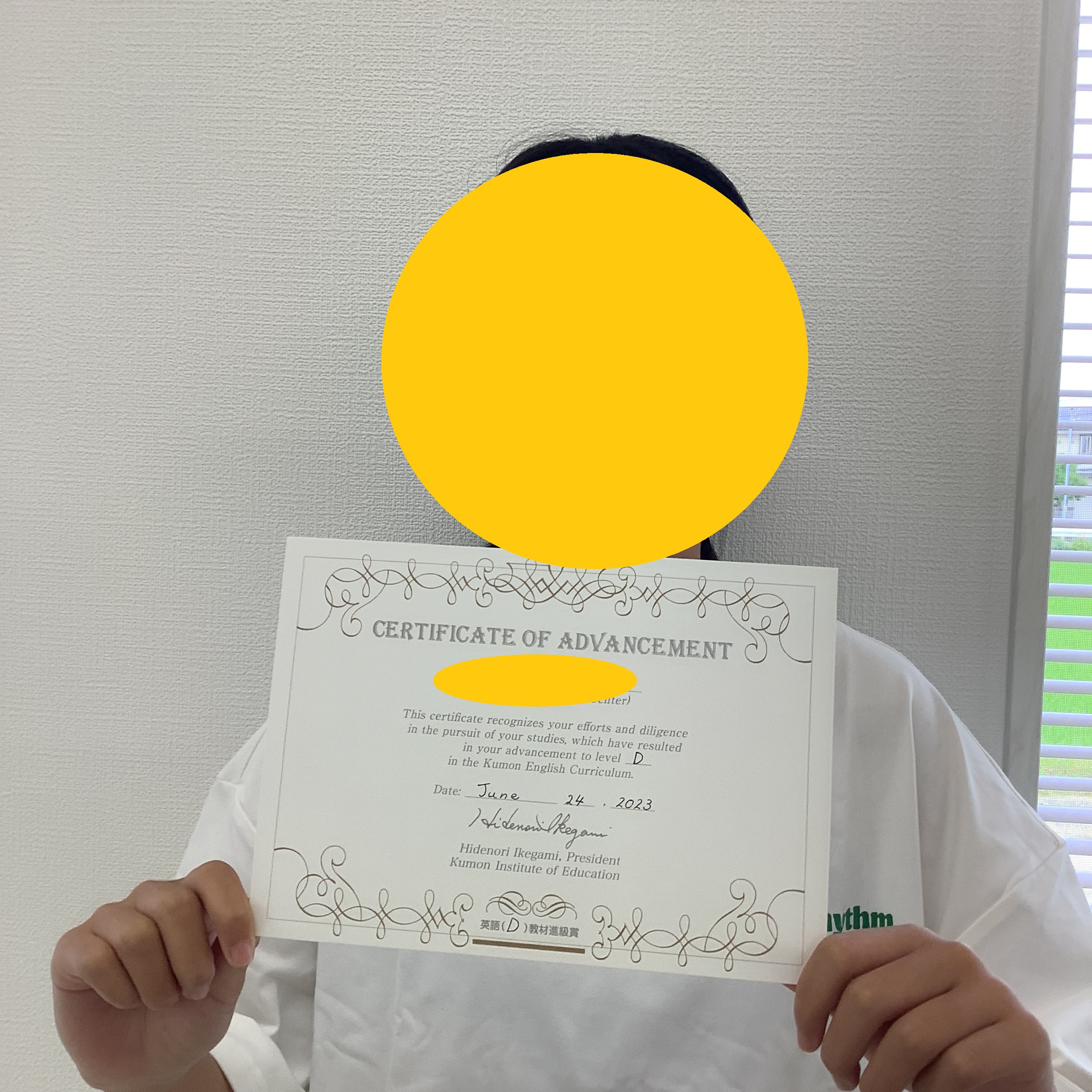 続いてAさん🍀 英語くもんの進級テストに見事合格!賞状も英語で書かれています。