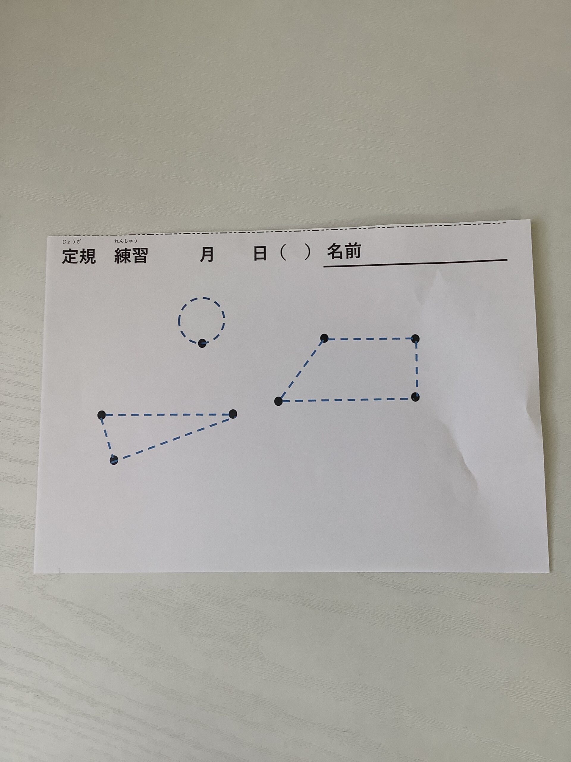 最近ではさらにステップアップさせて定規を使った写し取りに挑戦してもらっています。