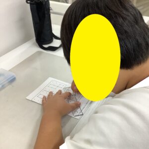視空間認知や定規を使う練習等で視覚機能や目と体のチームワークを育てることを目的として行っています。