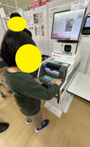 先輩Kさんに続き、Sさんもセルフレジでの支払いにチャレンジ❣