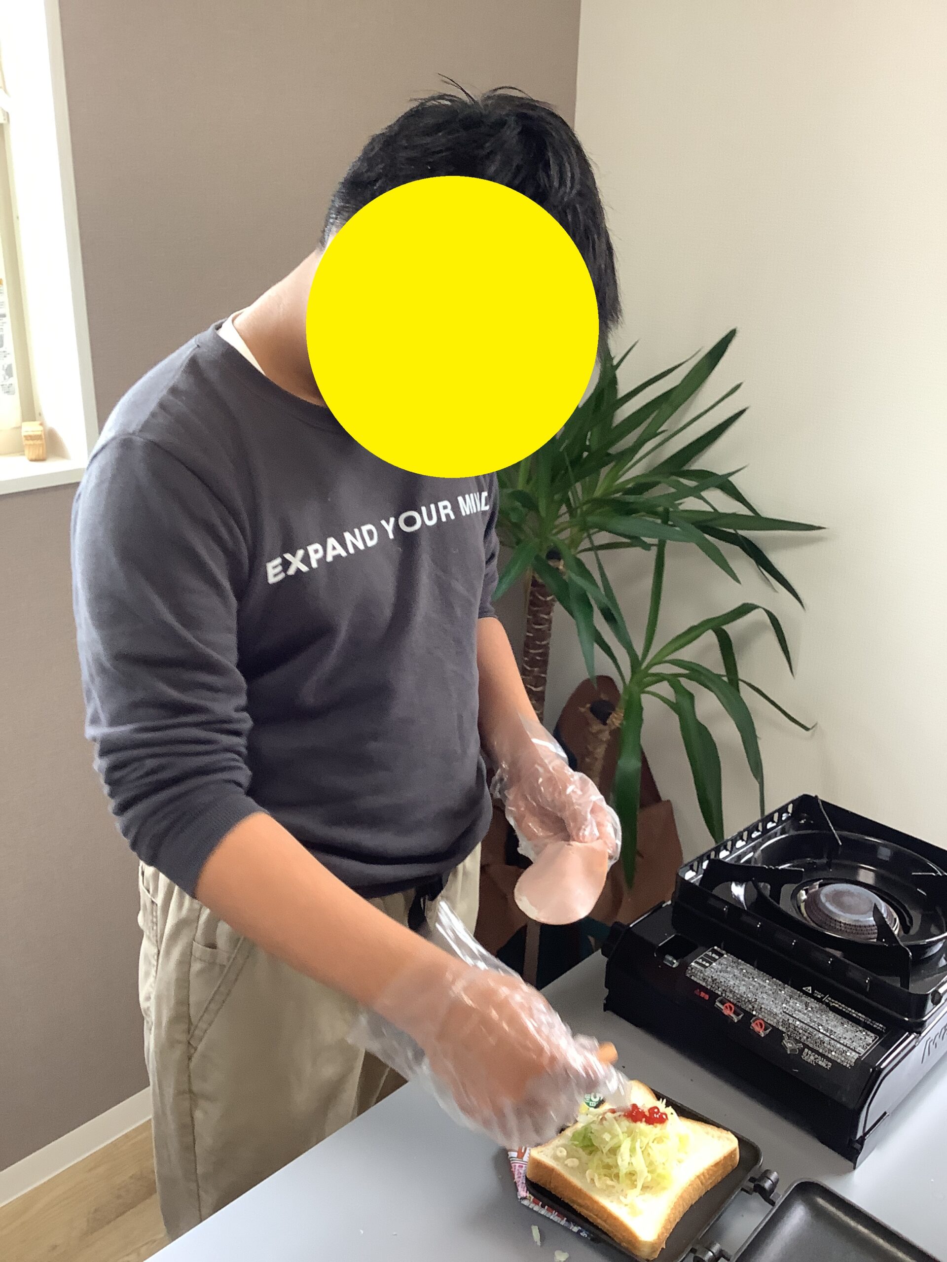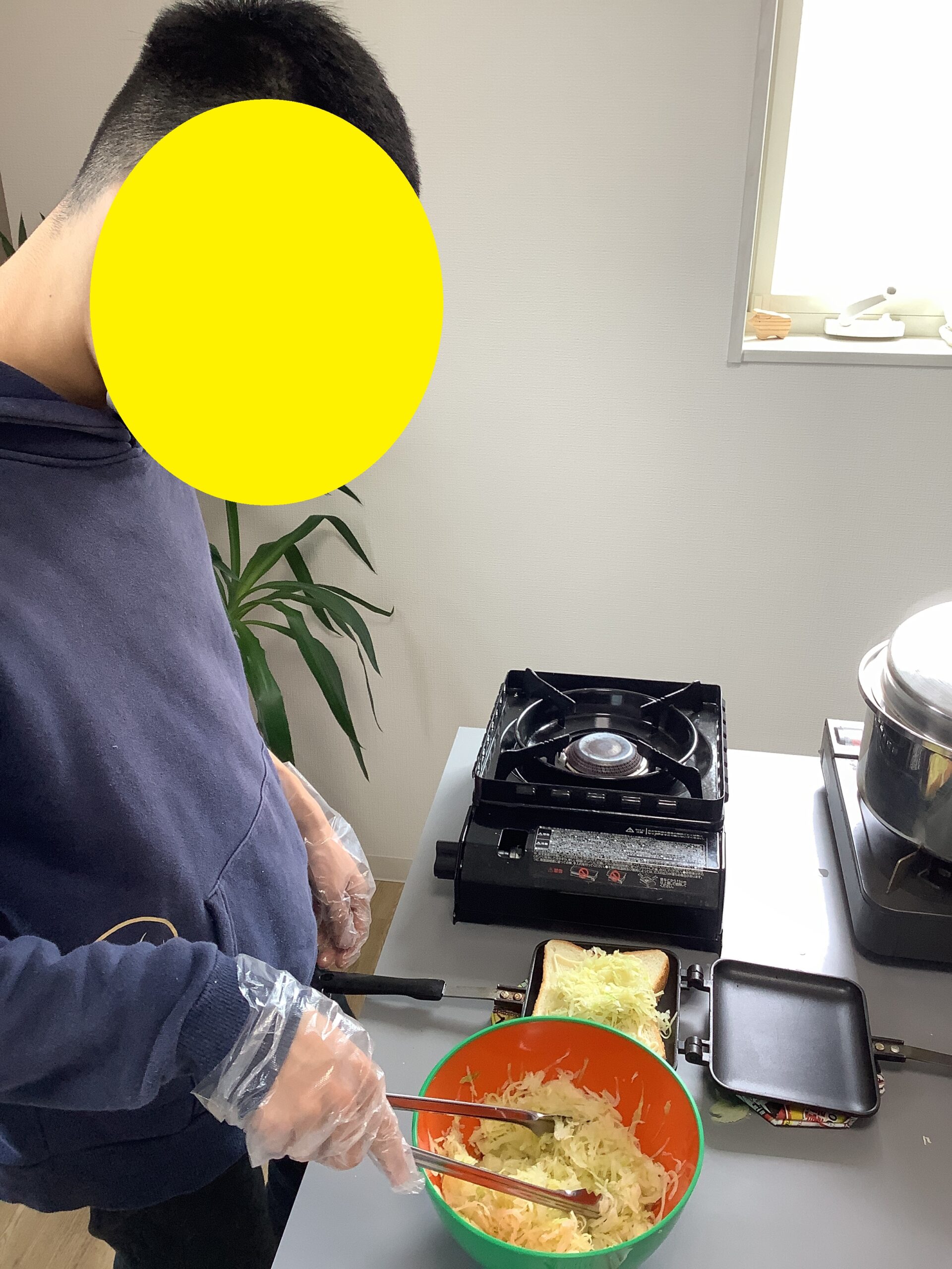 直火式のホットサンドメーカーを使って各自でホットサンド作りを行いました。