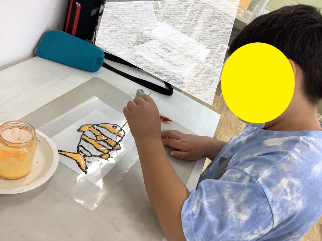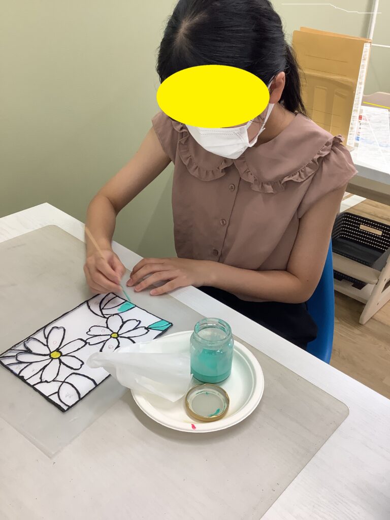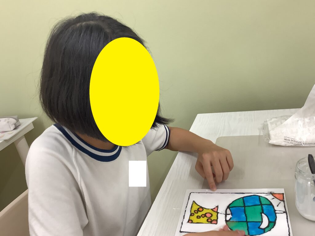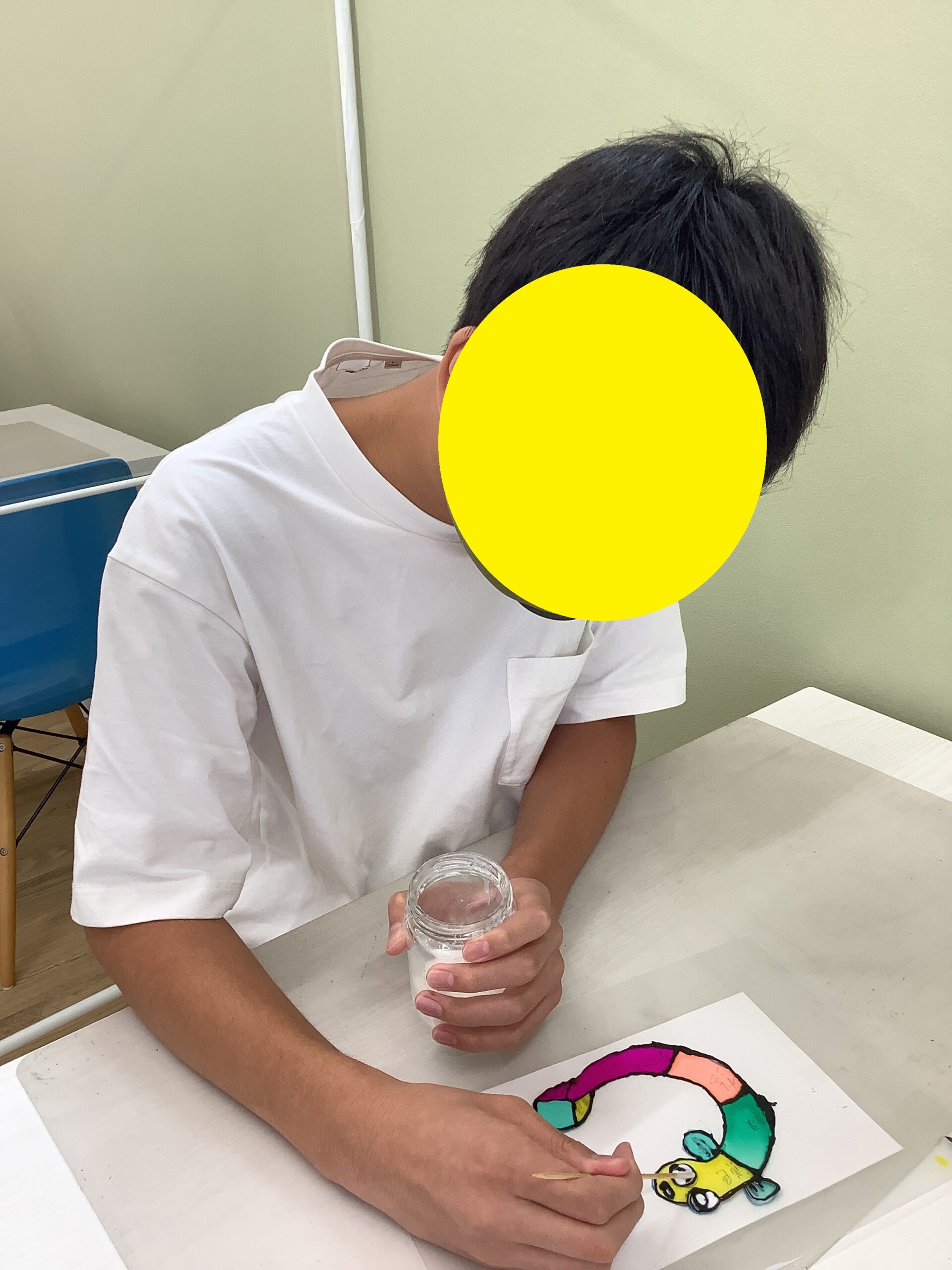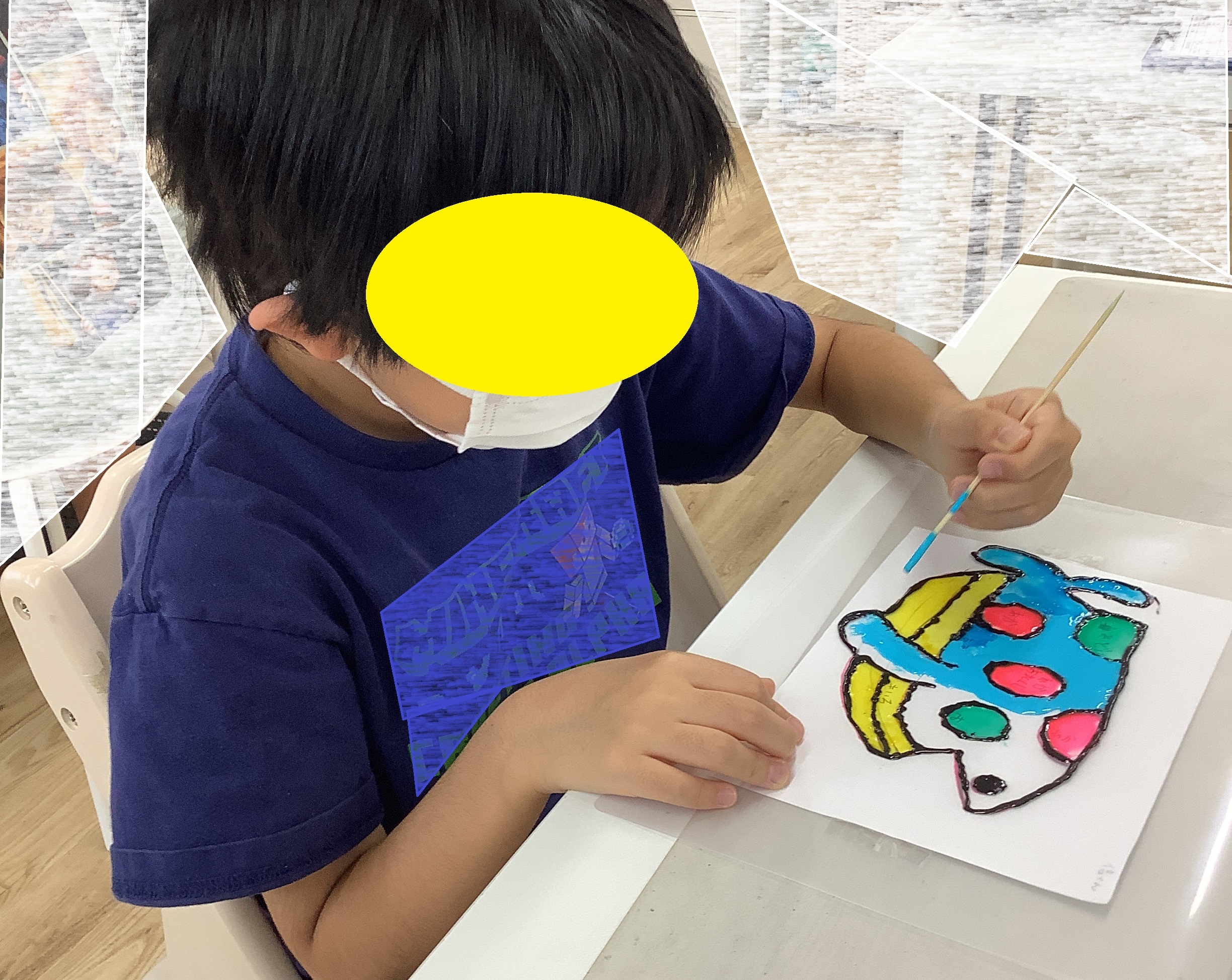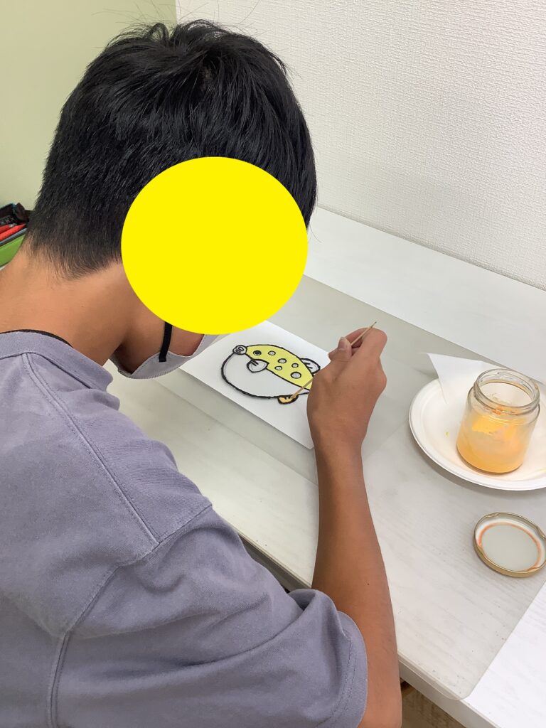 長時間利用日に、木工用ボンドや墨汁を使ったステンドグラス作りに挑戦してもらいました。