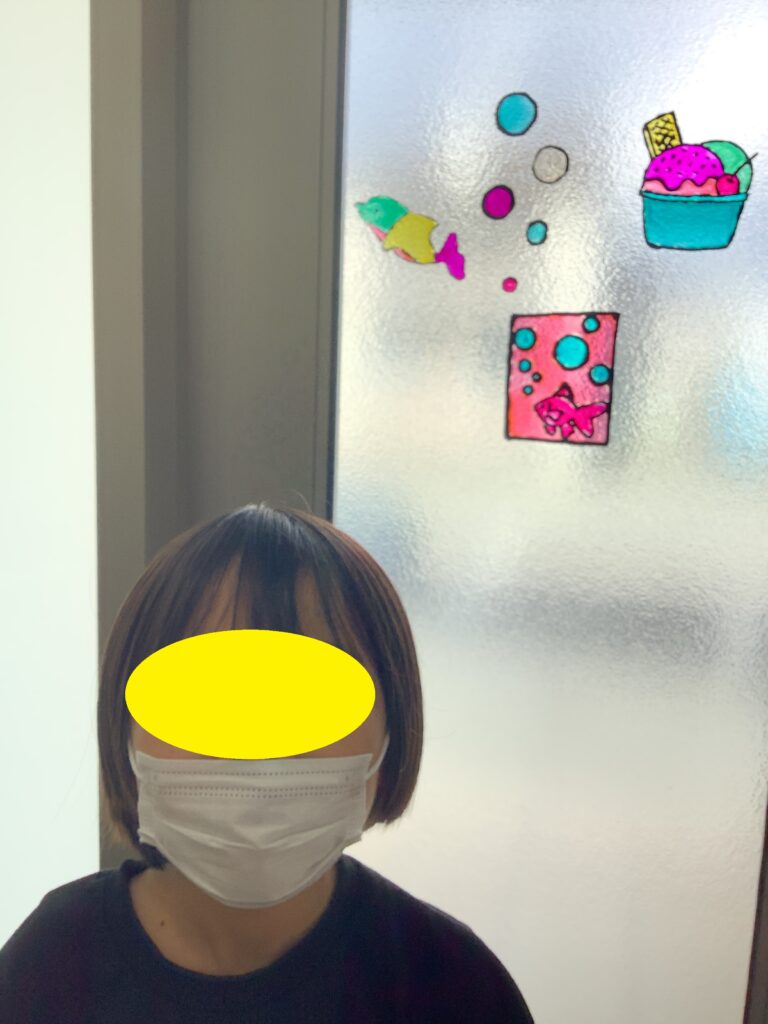 仕上がった作品はイーネットスクールの玄関の窓に貼って写真撮影です📷